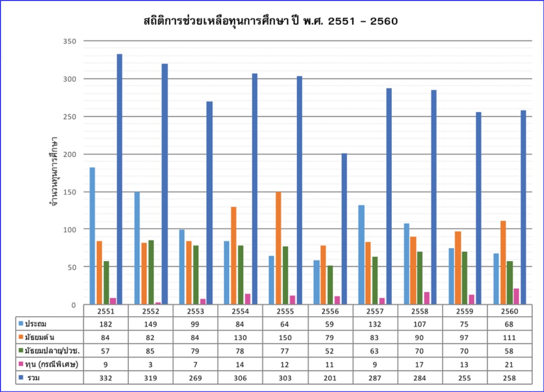๒. สนับสนุนทุนการศึกษาตามหลักเกณฑ์การช่วยเหลือ ดังนี้