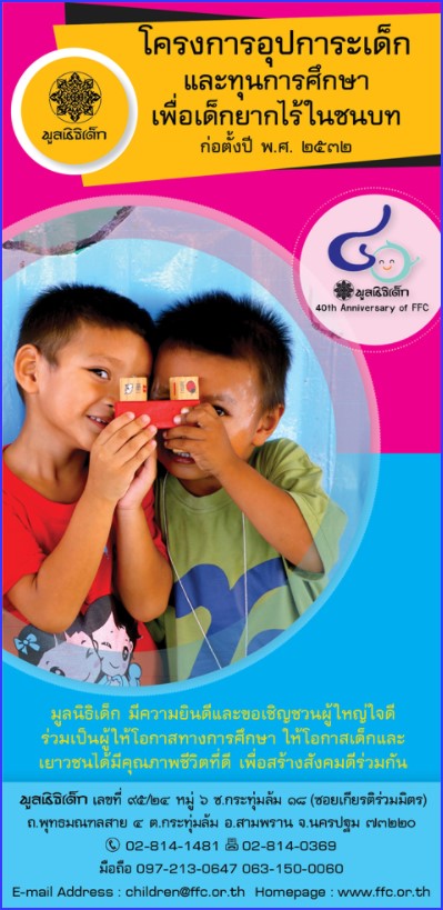 ๒. เพื่อแบ่งเบาภาระของครอบครัวที่ประสพปัญหาเรื่องการศึกษา