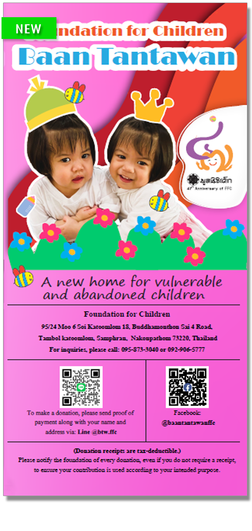 สามารถคลิกเพื่อเข้าชมหรือดาวน์โหลดแผ่นพับเพื่อเผยแพร่การทำงานของมูลนิธิเด็กได้