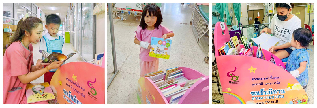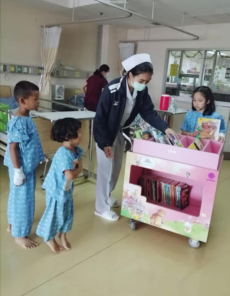 รถเข็นนิทานอยู่ในหอผู้ป่วยจำนวน ๑,๖๑๕ แห่ง จำนวนรถเข็นนิทาน ๑,๘๐๖ คัน