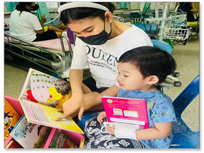 ๒. เพื่อให้เด็กป่วยและไม่ป่วยเพลิดเพลินกับการอ่านหนังสือและนิทาน