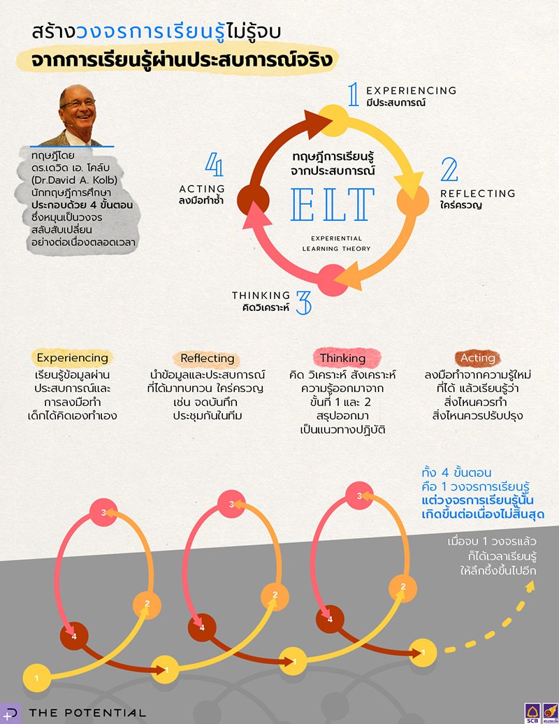 เดวิด โคล์บ (David Kolb) นักทฤษฎีการศึกษาชาวอเมริกันได้เสนอทฤษฎีการเรียนรู้จากประสบการณ์ ที่เรียกว่า Experiential Learning Theory (ELT) ไว้ตั้งแต่ปี 1984 พูดถึง Learning Cycle หรือวงจรการเรียนรู้ 4 ขั้นตอนซึ่งเป็นกระบวนการเรียนรู้ที่เกิดขึ้นได้อย่างไม่มีขีดจำกัด ได้แก่