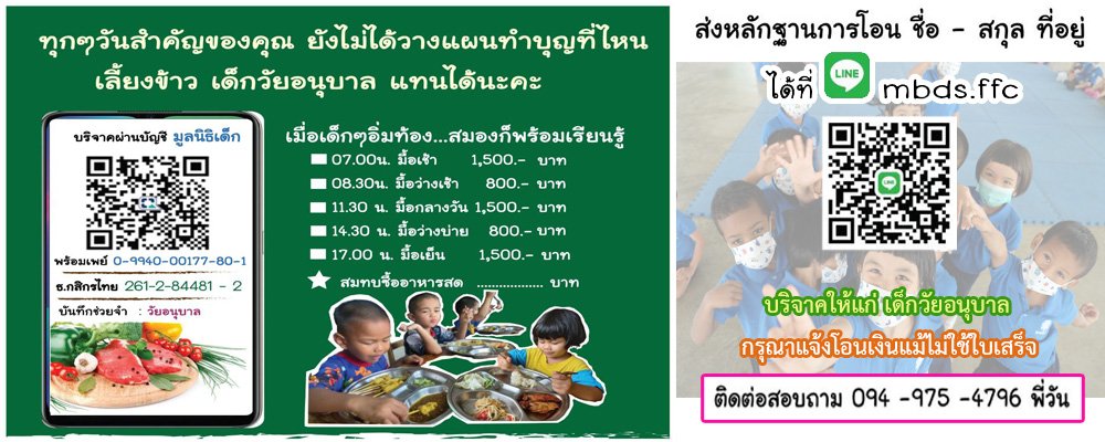 สนใจเป็นเจ้าภาพเลี้ยงอาหารเด็กวัยอนุบาล ทั้ง 60 ชีวิต