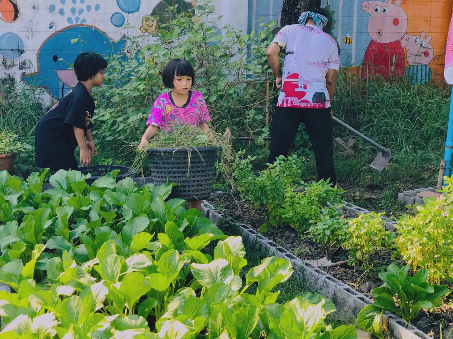 วีถีชีวิตเรียบง่าย ภายในสวนหลังโรงเรียน เป็นการกินอย่างมีความสุขภายใต้ธรรมชาติที่ร่มเย็น