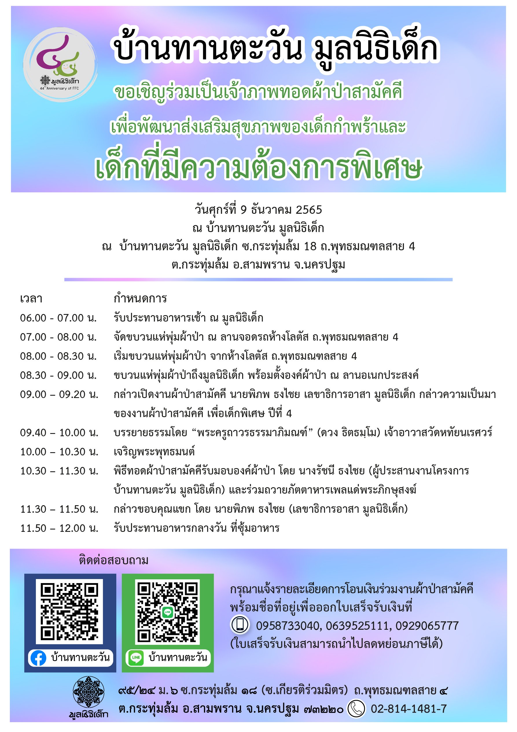 กำหนดการผ้าป่าบ้านทานตะวัน ปี ๒๕๖๕