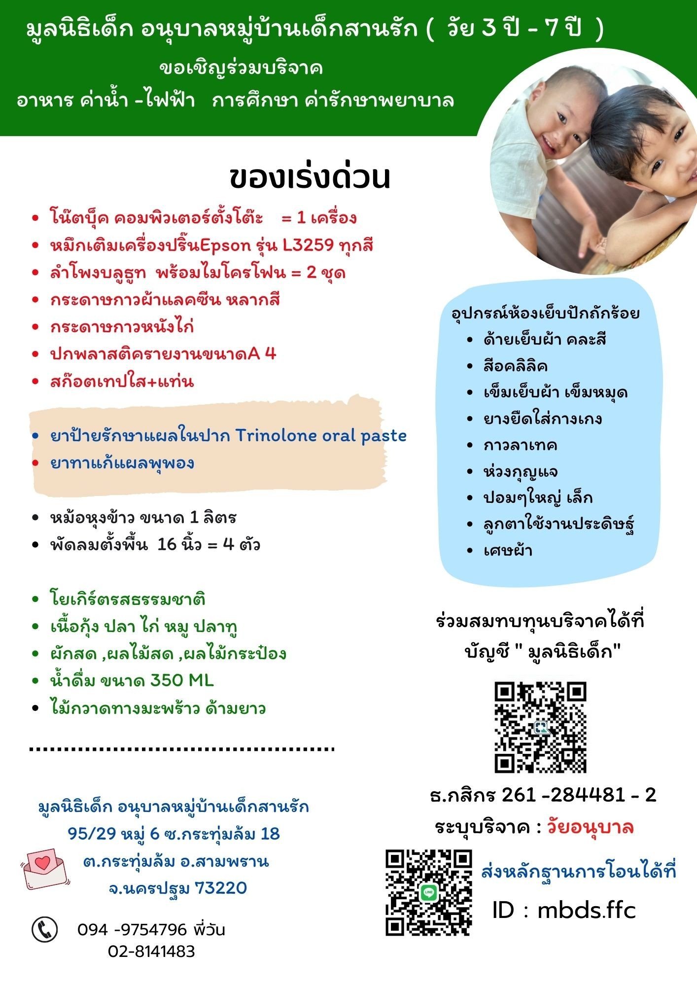 ร่วมบริจาคผ่านบัญชี "มูลนิธิเด็ก"