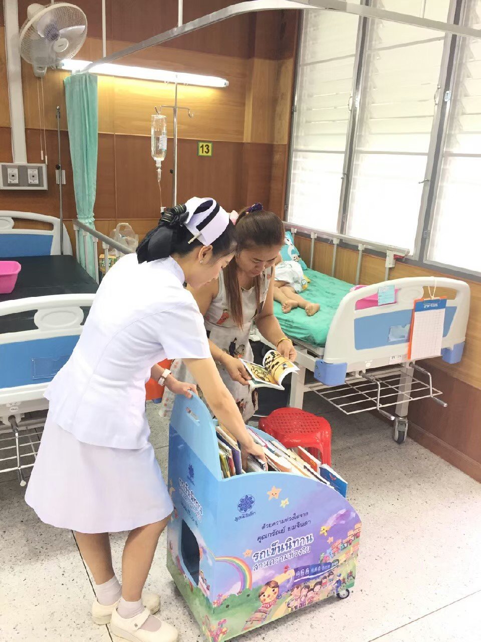 "นิทานทศกัณฐ์ ลัก นางสีดา" คัดสรรลงในรถเข็นนิทาน มูลนิธิเด็ก ที่จะพาให้เด็กๆ ได้จินตนาการตามตัวละครในหนังสือนิทาน หนังสือมืมากมายให้เด็กได้เลือกอ่าน สร้างความสำราญในหอผู้ป่วย