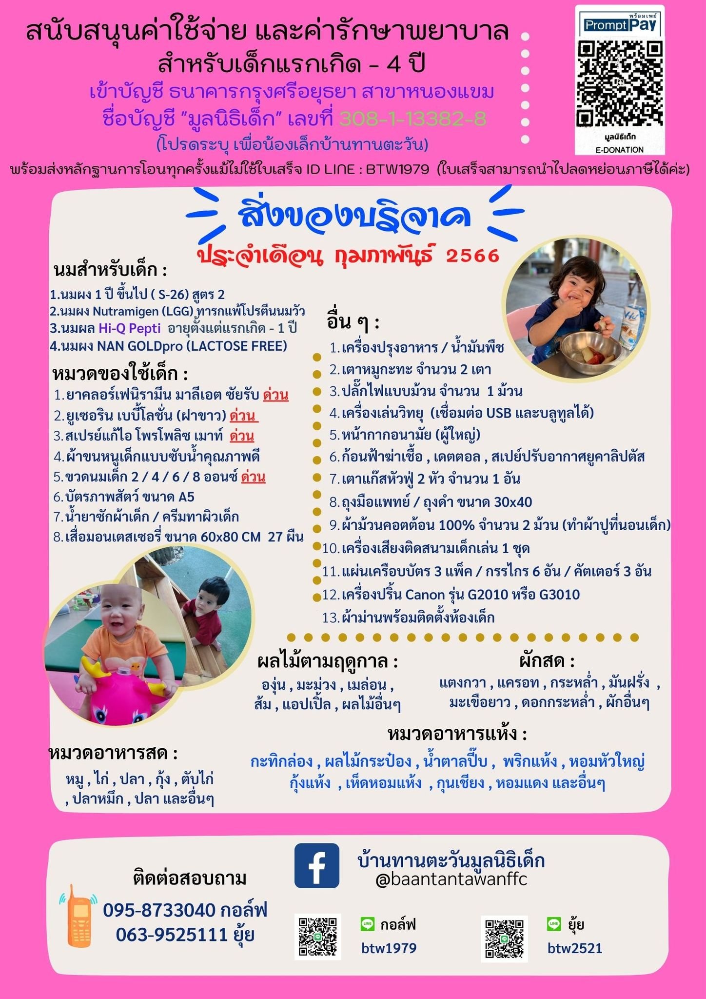 ร่วมสนับสนุนเป็นสิ่งของที่บ้านทานตะวัน ต้องการเร่งด่วน ส่งมาได้ที่