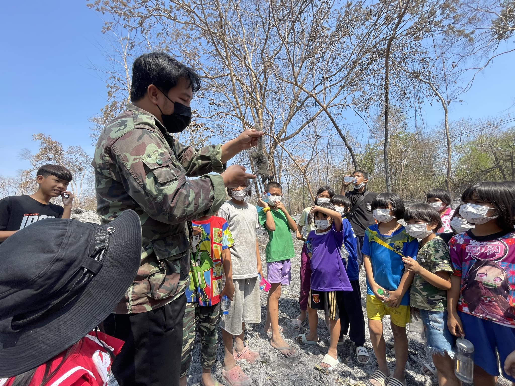 เจ้าหน้าที่ได้ให้ความรู้เกี่ยวกับเรื่องไฟป่าแก่เด็กๆ โรงเรียนหมู่บ้านเด็ก
