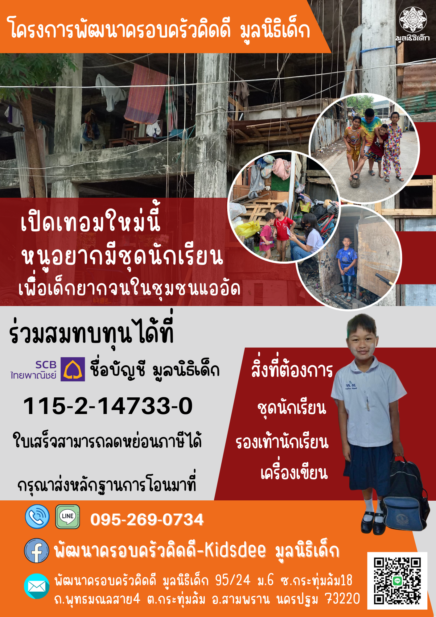 บริจาคเงินซื้อชุดนักเรียนให้เด็กยากจนในสลัม ได้ที่