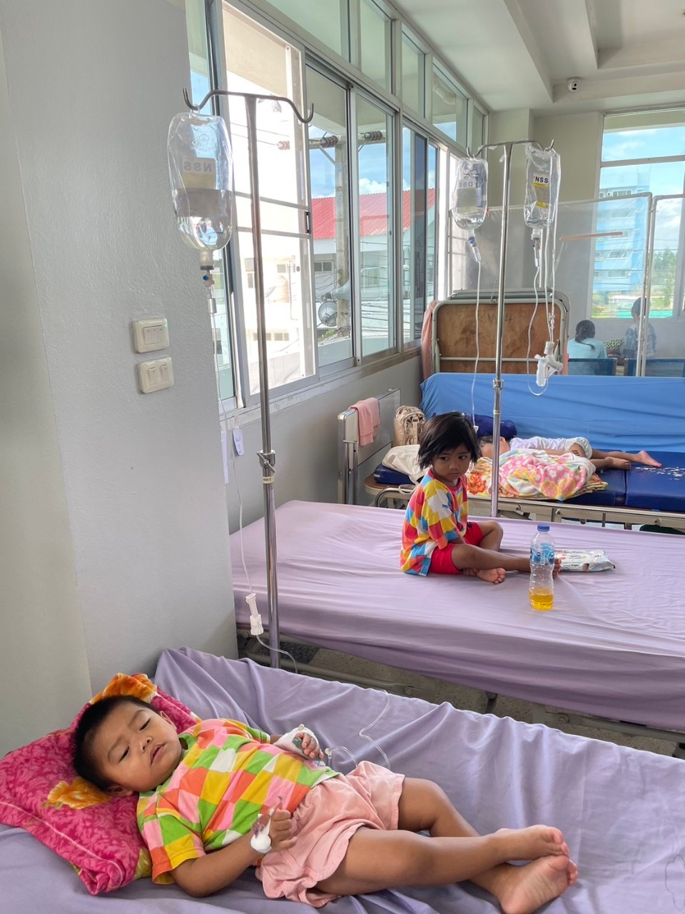และวันนี้เป็นวันที่ 2 แล้ว ที่เด็กๆต้องนอนอยู่ที่ โรงพยาบาล