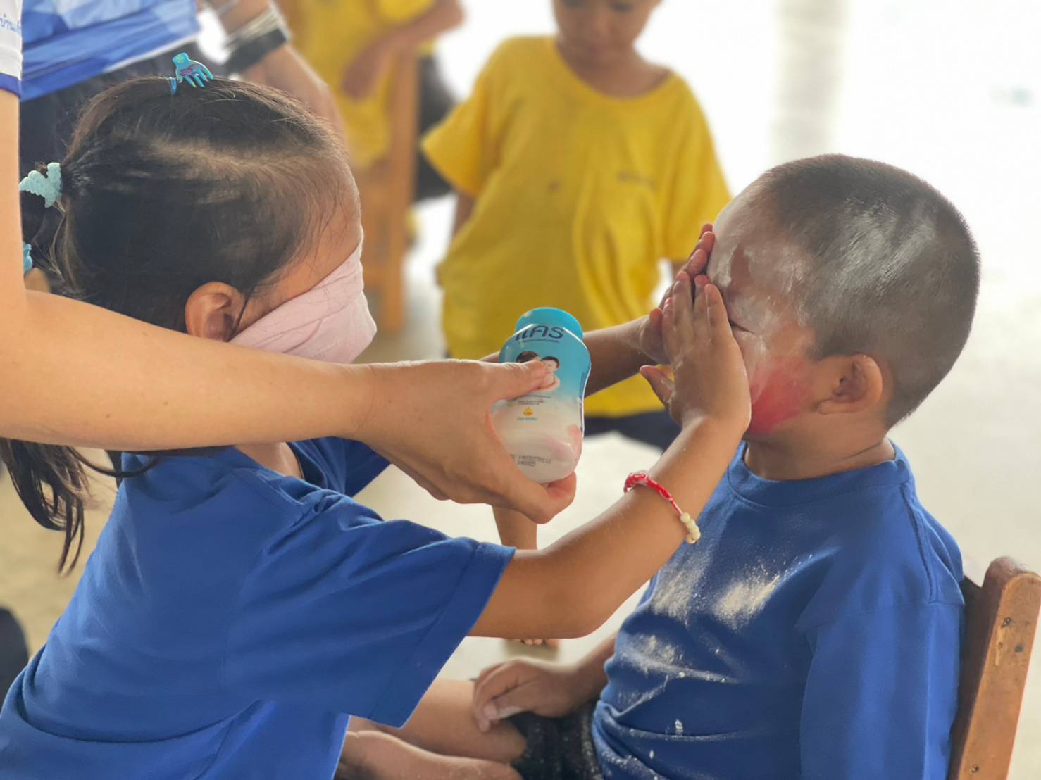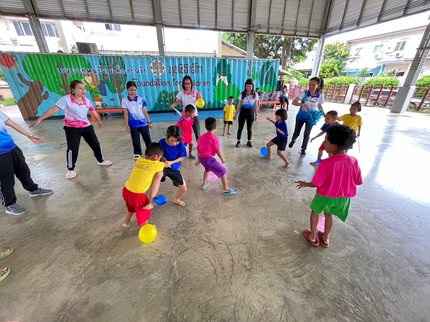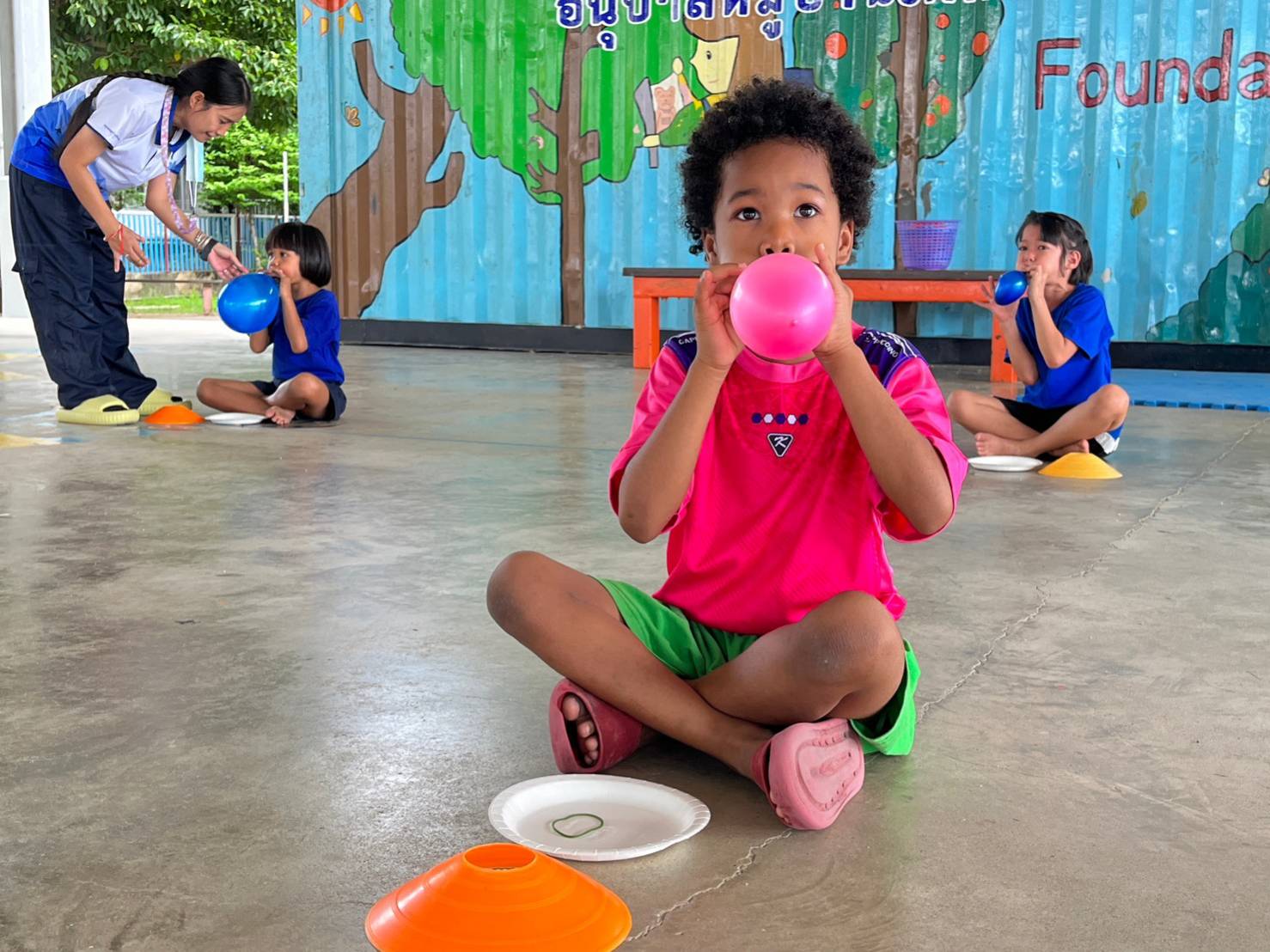 โดยการจัดกิจกรรมการแข่งกีฬาสี เด็กๆจับฉลากเลือกสีแบ่งกลุ่มมีสีเหลือง สีชมพู สีฟ้า