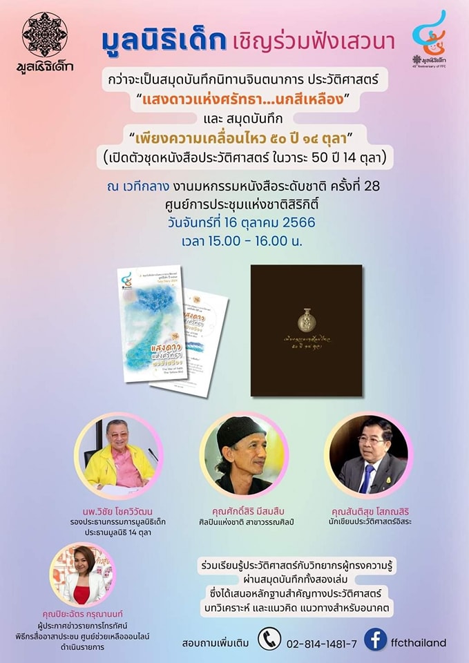 ณ เวทีกลาง งานมหกรรมหนังสือระดับชาติ ครั้ง 28 ศูนย์การประชุมแห่งชาติสิริกิติ์ วันจันทร์ที่ 16 ตุลาคม 2566 เวลา 15.00-16.00 น.