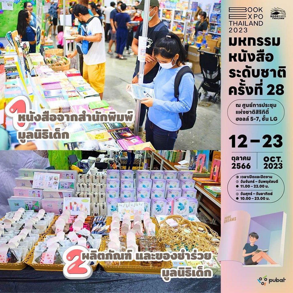 ทั้งนี้ท่านยังสามารถมาเลือกดู เลือกชม ซื้อหนังสือนิทาน หนังสือความรู้ติดไม้ติดมือไปฝากคนที่บ้านได้นะ พร้อมทั้งร่วมทำกิจกรรมในงานทักทายเด็กตัวน้อยจากมูลนิธิเด็ก มาพบกันที่ บูธ D16 ระหว่าง 12-23 ตุลาคม 2566