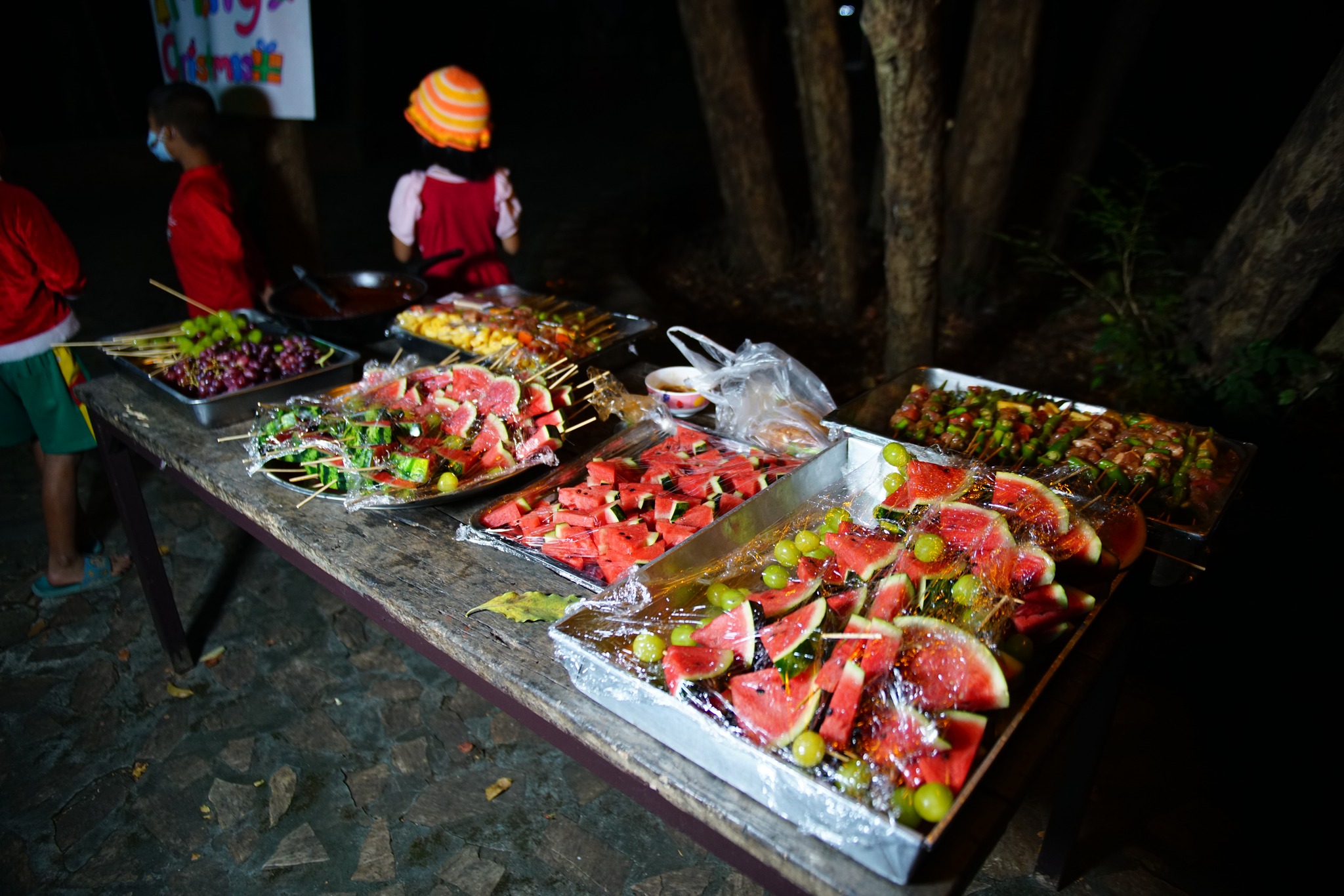 กิจกรรมใน มีการแสดงโชว์เต้น มีปิ่งย่างบาร์บีคิว ผลไม้หวานๆ ขนม