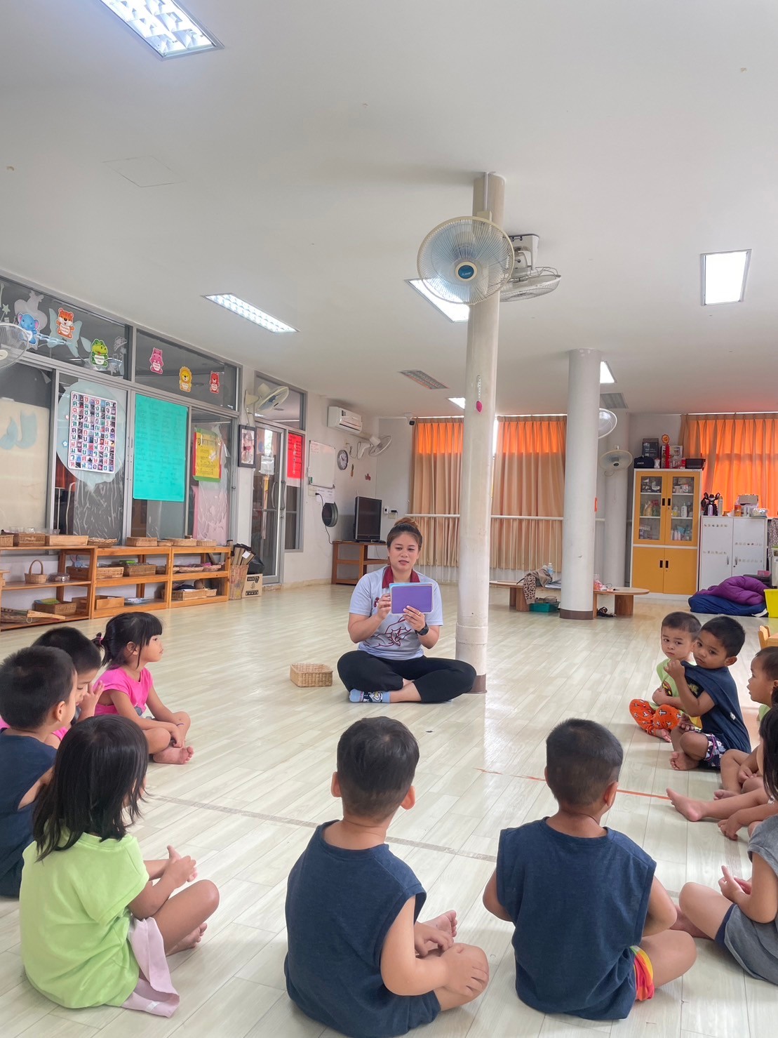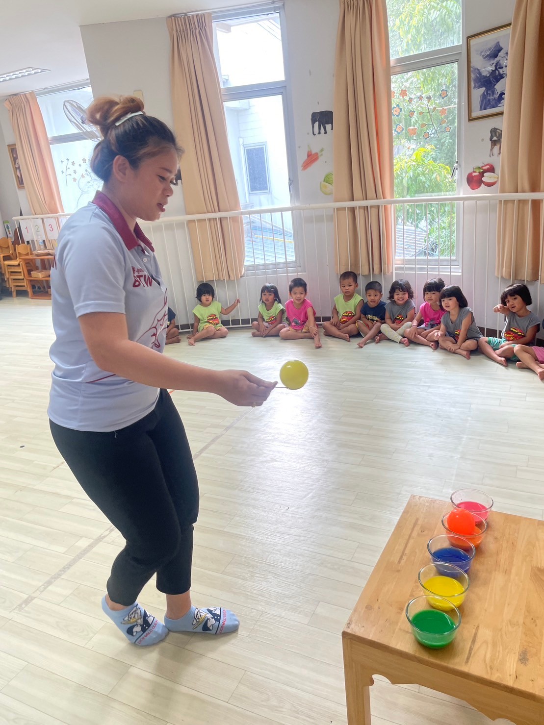 พี่บีแสดงตัวอย่างการเล่นให้เด็กๆได้ดูก่อน