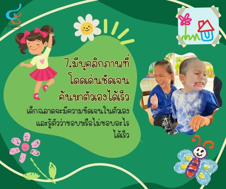 ข้อนี้ก็สามารถสังเกตเห็นได้ชัดเช่นกันค่ะ ถ้าลูกมีบุคลิกภาพที่โดดเด่นและชัดเจน ลูกก็จะเติบโตขึ้นไปด้วยความที่พิเศษกว่าคนอื่น