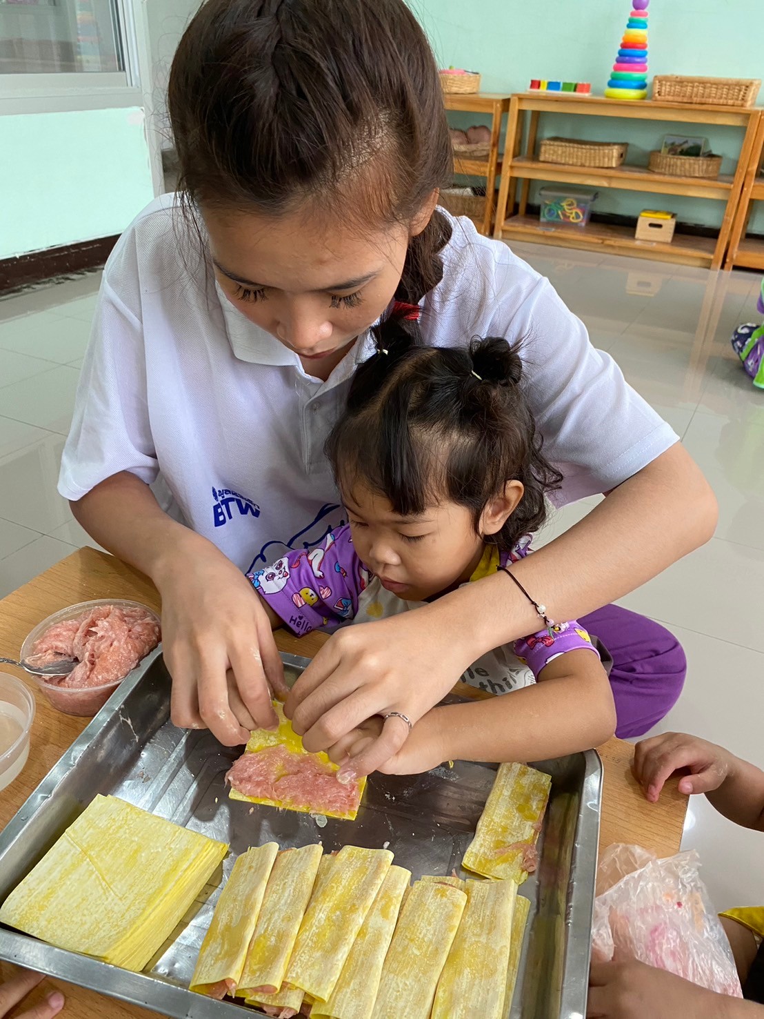 เด็กๆ และคุณครูช่วยทำเกี๊ยวแสนอร่อย