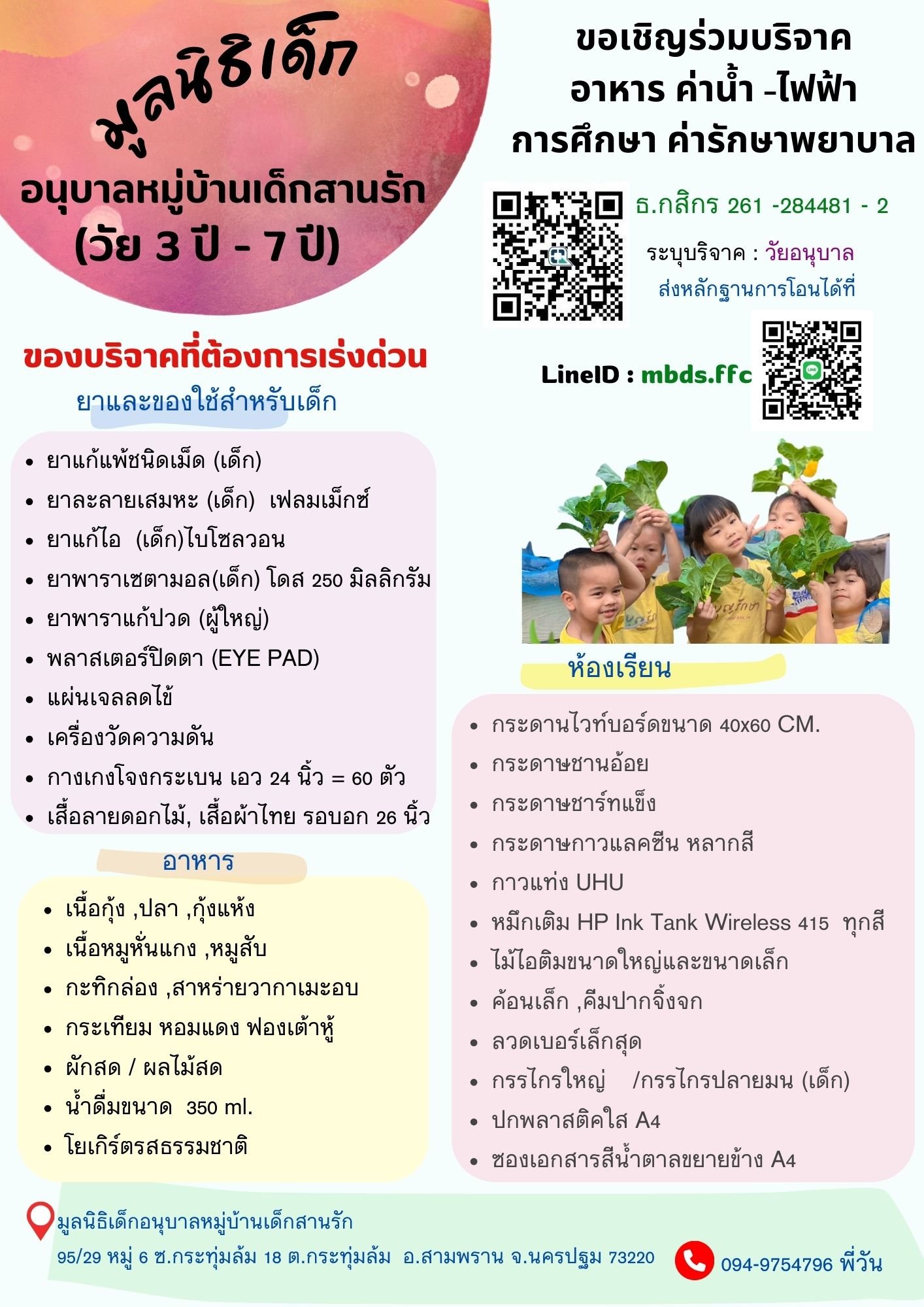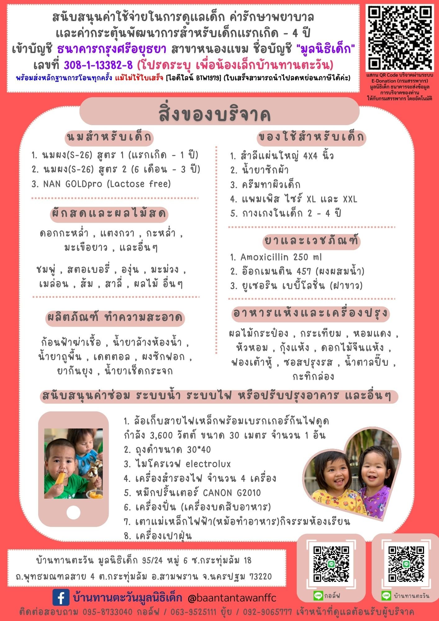 ร่วมบริจาคผ่านบัญชี "มูลนิธิเด็ก"