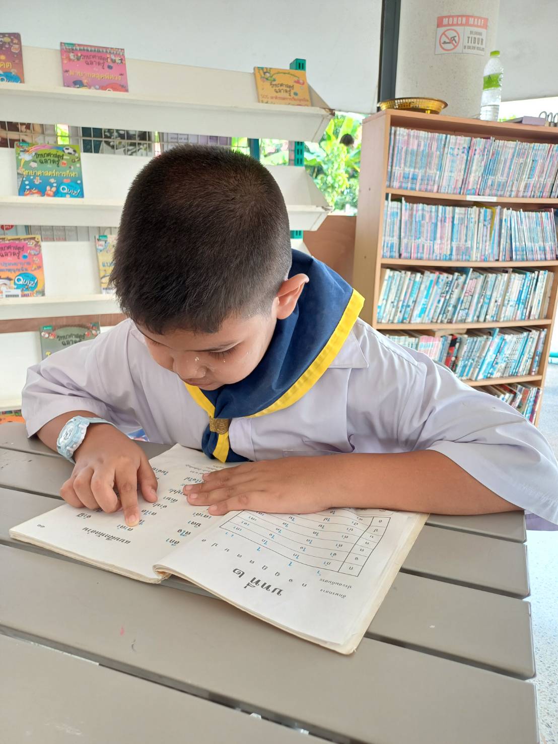 ก็จะให้อ่าน ๑ หน้า ตัวหนังสือก็เป็นคำ ๆ