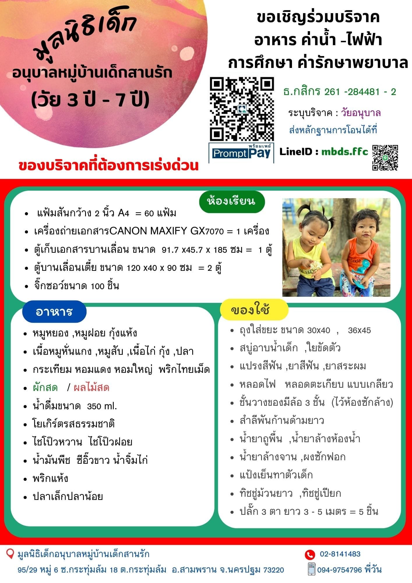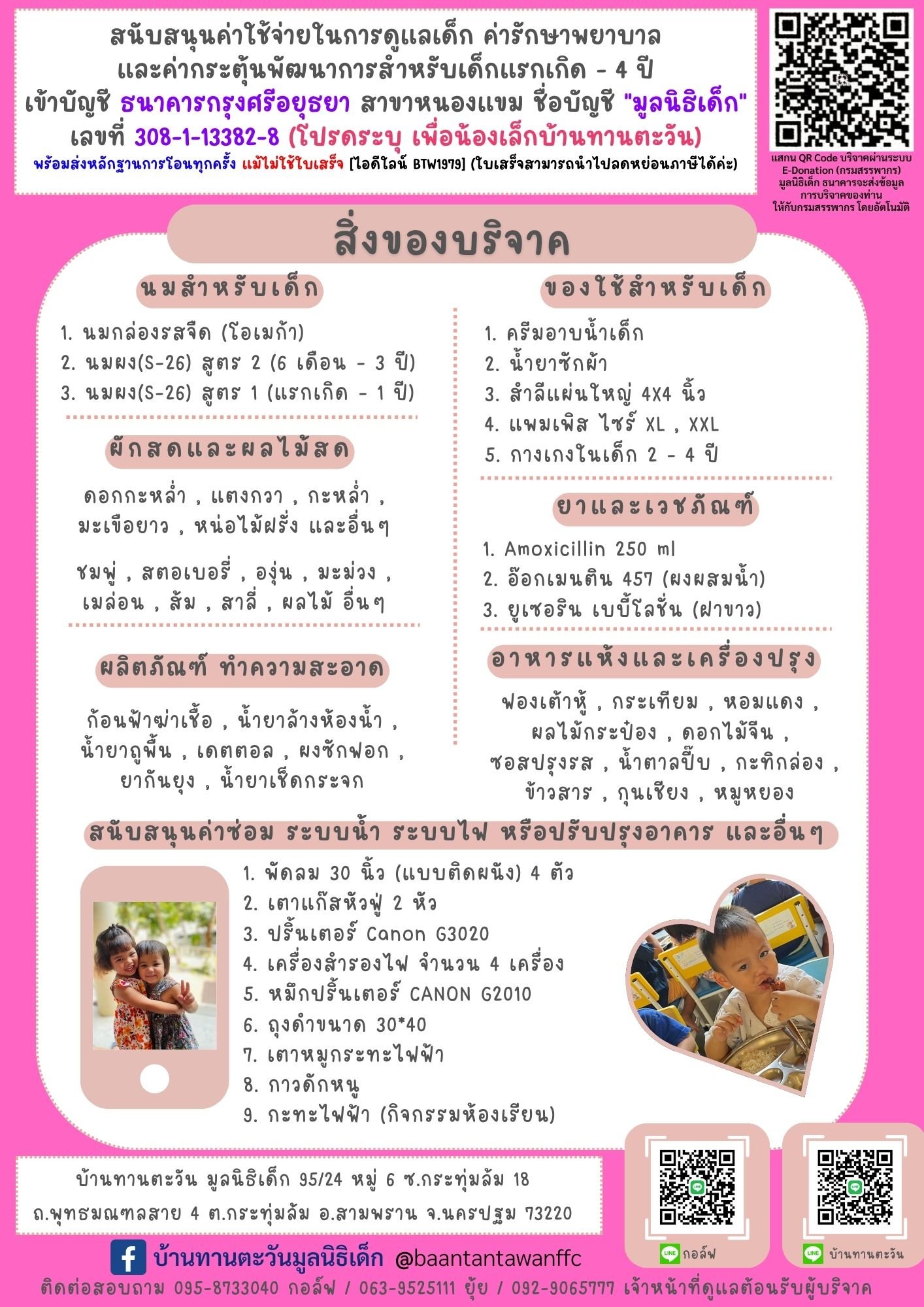 ร่วมบริจาคผ่านบัญชี "มูลนิธิเด็ก"