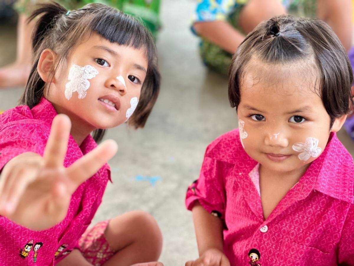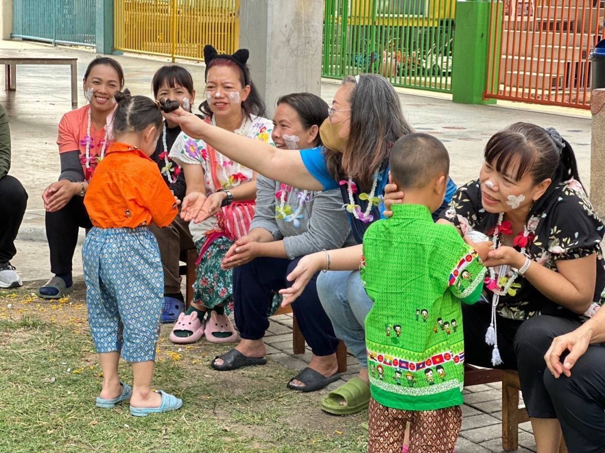 โดยเด็กๆ แต่งชุดไทยกันทุกคน ร่วมรดน้ำขอพรจากผู้ใหญ่ในมูลนิธิเด็ก