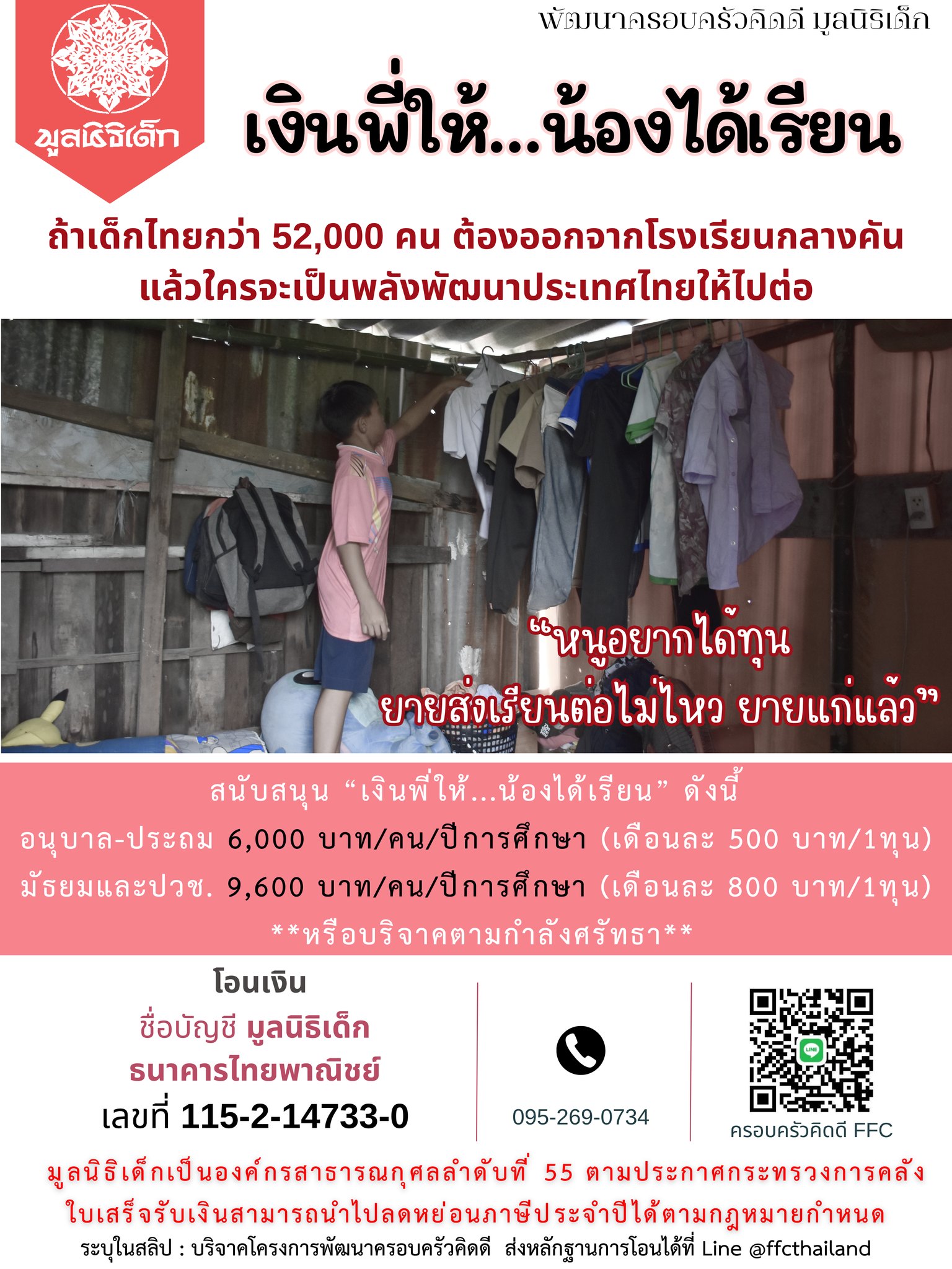 สนับสนุนได้ที่บัญชี “มูลนิธิเด็ก”