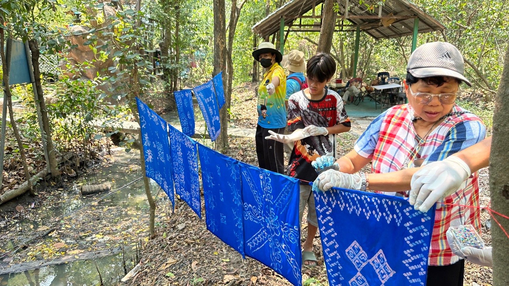 ที่ศูนย์เรียนรู้ผ้ามัดย้อมสีธรรมชาติบ้านบางน้ำผึ้ง ตลาดบางน้ำผึ้ง อ.พระประแดง