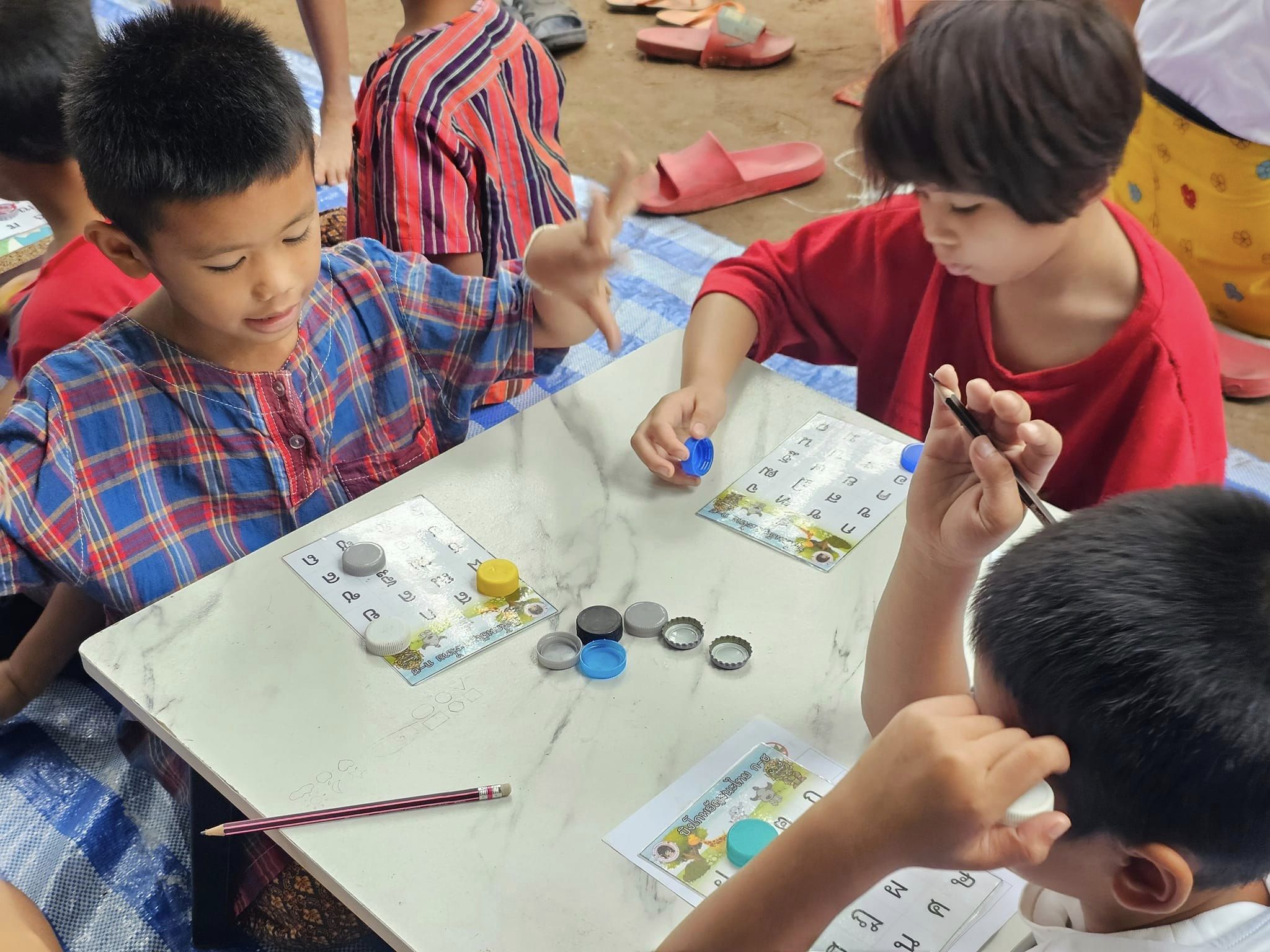 ๒.ฐานคัดลายมือเขียนตามรอยปะ
