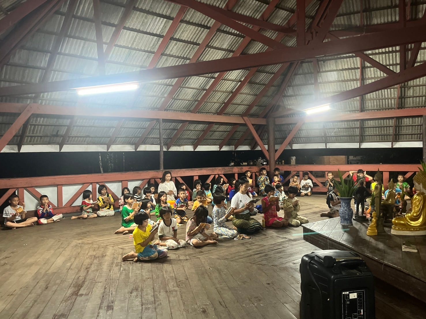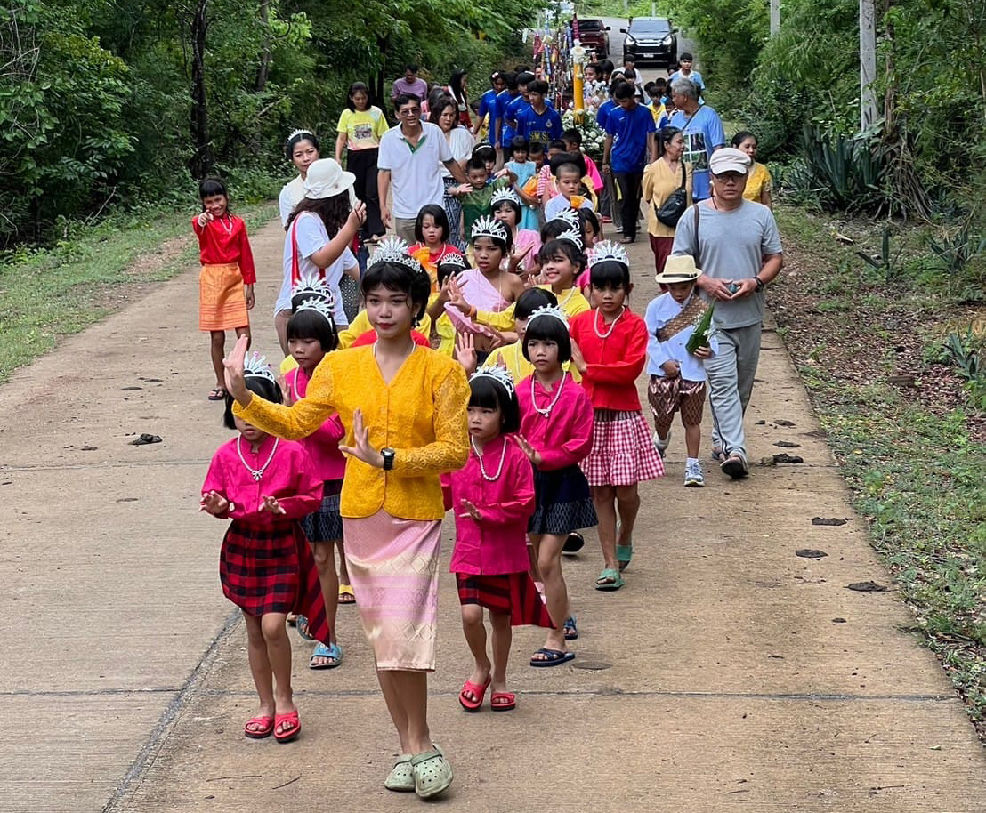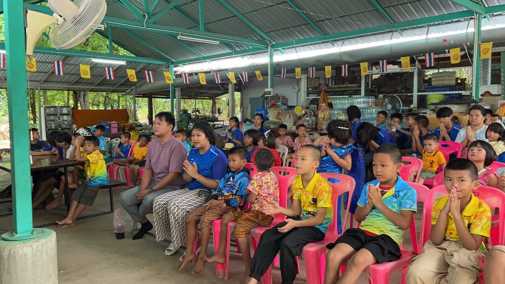 เมื่อวันที่ ๑๙-๒๐ กรกฎาคม ๒๕๖๗ คณะครู เจ้าหน้าที่ นักเรียน โรงเรียนหมู่บ้านเด็ก ร่วมกันแห่เทียนพรรษา รำแห่เทียน ถวายผ้าอาบน้ำฝน สังฆทาน ต้นกัณฑ์ และปัจจัยเพื่อบำรุงวัด ถวาย ณ สำนักสงฆ์เขาพุพหรม บ้านแก่งปลากด หมู่ ๕ ตำบล ช่องสะเดา อำเภอเมืองฯ จังหวัดกาญจนบุรี และในวันพระใหญ่เด็ก ๆ ได้ทำวัตรเย็น สวดมนต์ ไหว้พระ ทำสมาธิ แผ่เมตตาให้กับตนเอง สรรพสัตว์ และอธิษฐานจิต ให้กับพ่อแม่ ครู