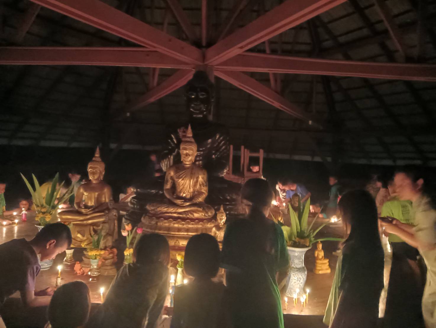 อาจารย์ และผู้อุปการะคุณทุกท่าน รวมถึงเวียนเทียนรอบพระองค์ดำใหญ่ บนอาคาร ๖ เหลี่ยม เวลา ๑๙.๓๐ น