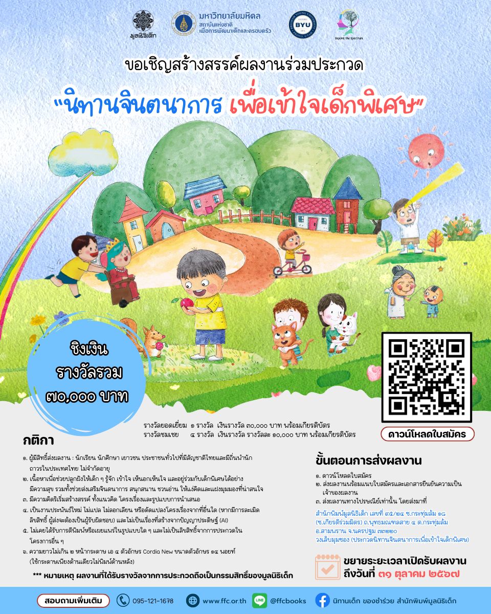 *** หมายเหตุ ผลงานที่ได้รับรางวัลจากการประกวดถือเป็นกรรมสิทธิ์ของมูลนิธิเด็ก