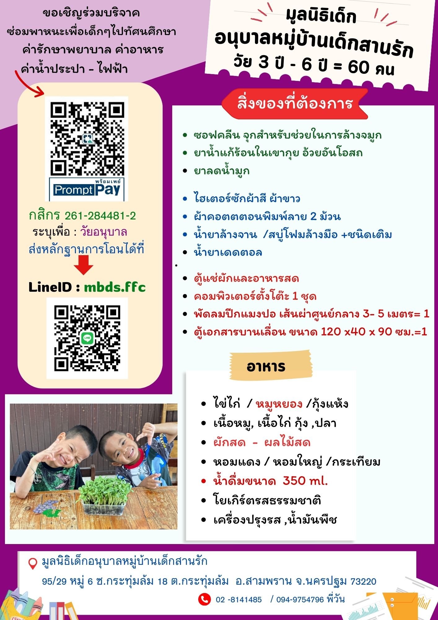 ร่วมบริจาคผ่านบัญชี "มูลนิธิเด็ก"