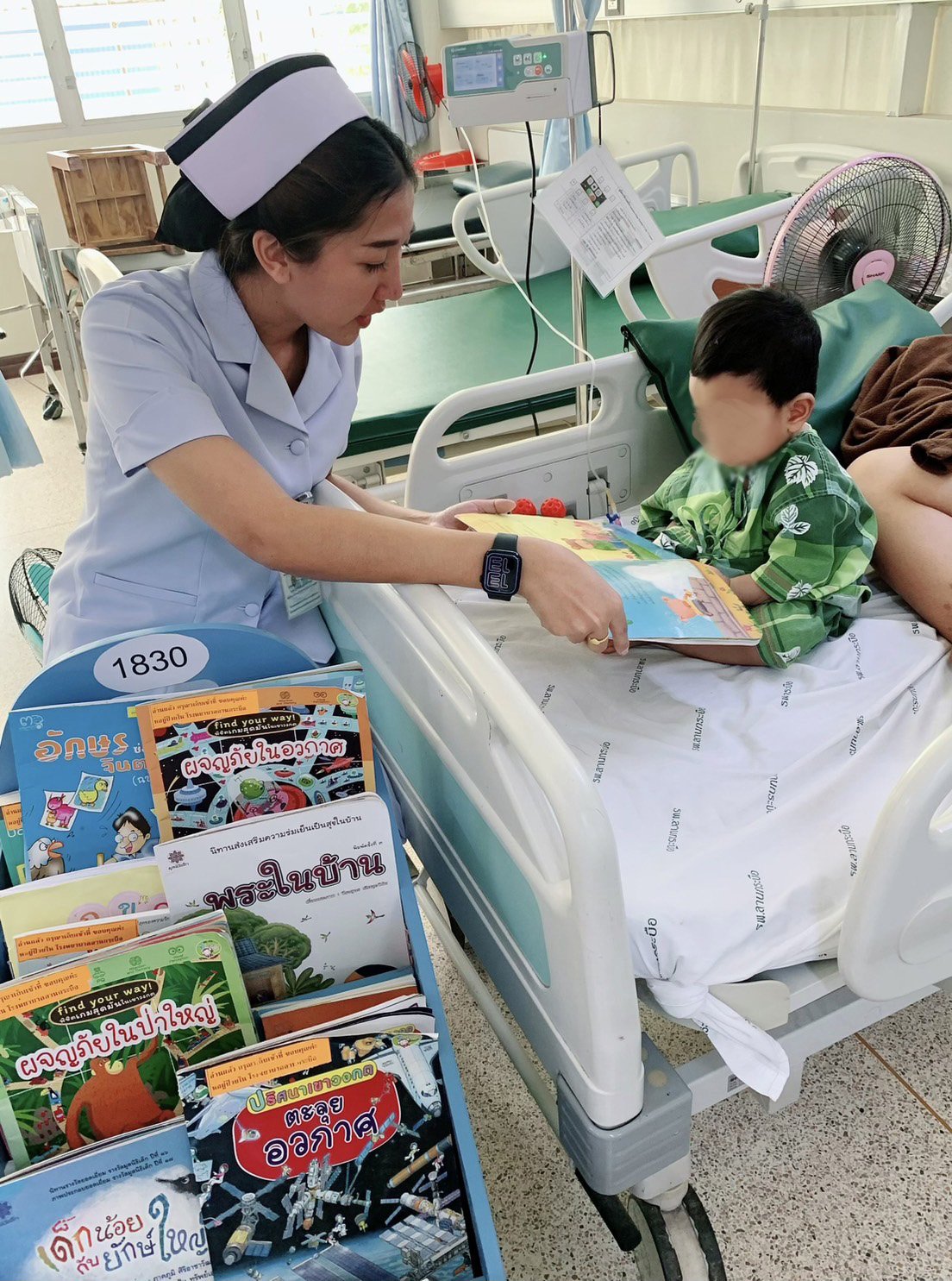 สำหรับเด็กที่ป่วย เราพบว่าเด็กมีความต้องการความรักและความอบอุ่นทางจิตใจมากกว่าปกติ เมื่อเด็กป่วยอยู่บนเตียง แน่นอนว่า เด็กกลุ่มนี้ต้องการกำลังใจที่ดีเพื่อความอบอุ่นทางใจจากพ่อแม่เป็นอย่างยิ่ง ในขณะที่บางวัน พ่อแม่ไม่ค่อยมีเวลามาเยี่ยม เพราะต้องทำงานหาเลี้ยงครอบครัว เด็กๆ จึงต้องใช้เวลาเพียงลำพังในช่วงกลางวันและในช่วงบ่ายอย่างโดดเดี่ยวอยู่บนเตียง ที่มีเพียงพยาบาลที่ผลัดกันมาดูแลแม้ว่าจะตลอดทั้งวัน แต่ก็ไม่เพียงพอที่จะอบอุ่นทางจิตใจได้ เนื่องจากเด็กป่วยบนเตียงจะมีความหวาดกลัวและเหงา เมื่อต้องอยู่เพียงลำพังในระหว่างที่เจ็บป่วย แต่หนังสือนิทานดีๆ สักเล่มจะช่วยบรรเทาพวกเขาได้ หนังสือจะเปรียบเสมือนเพื่อนที่ให้ความอบอุ่นทางจิตใจเมื่อต้องเจ็บป่วย