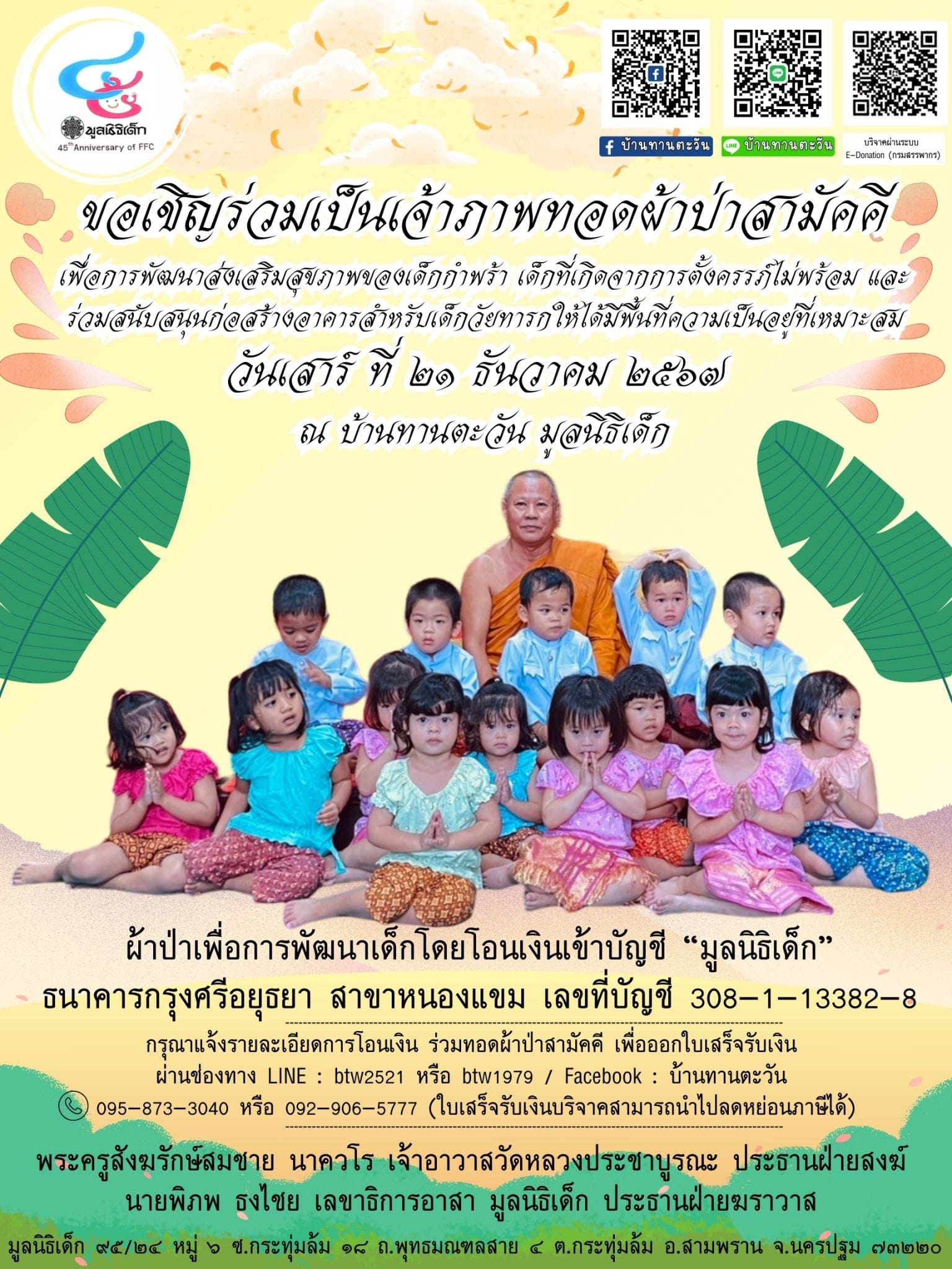 สามารถร่วมบริจาค ผ่านบัญชี “มูลนิธิเด็ก”