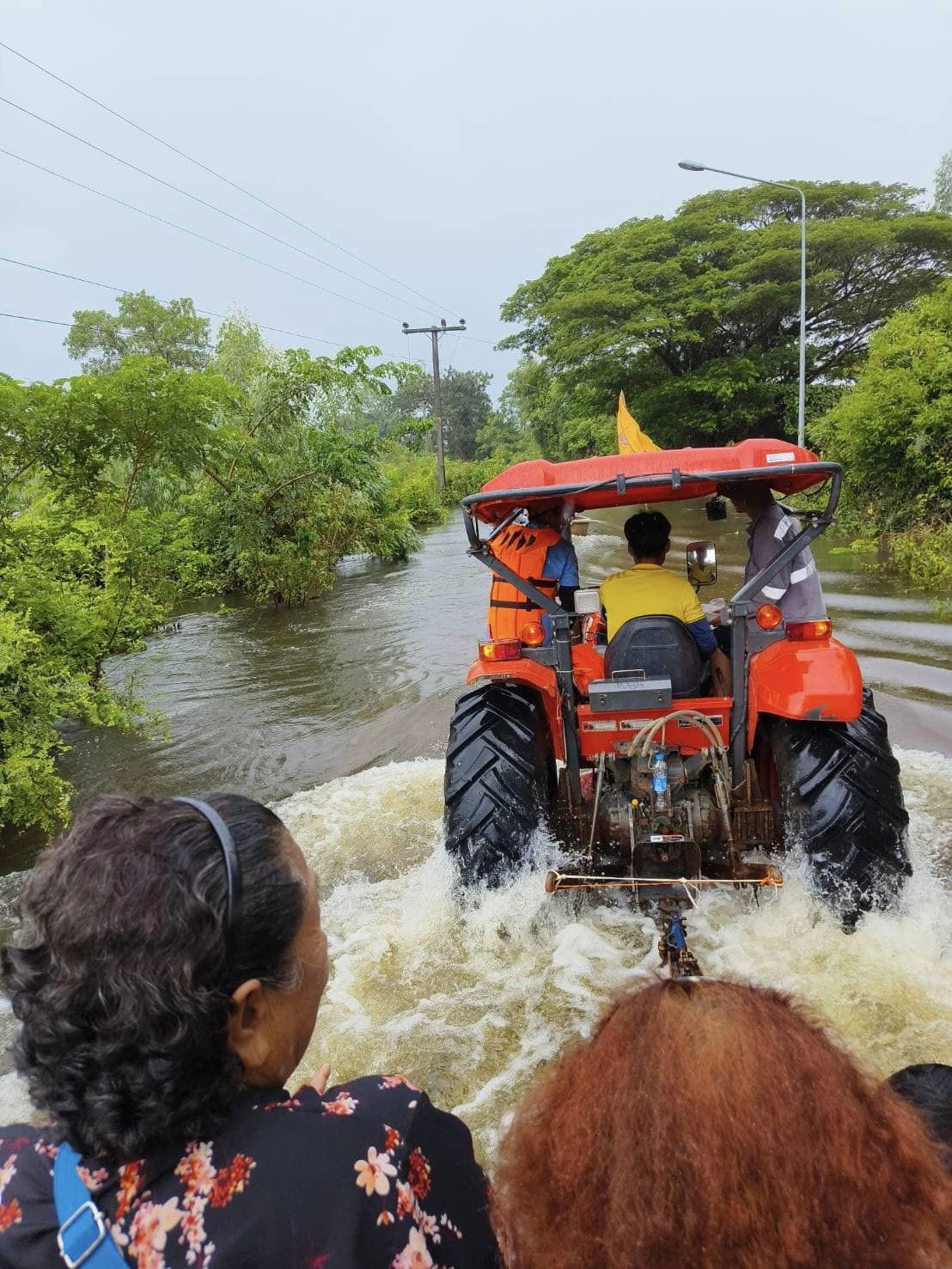 ระหว่างการเดินทางนั้น เต็มไปด้วยเม็ดฝนที่ตกพร่ำพร่ำ ทางเรารู้สึกภูมิใจคนไทยที่ได้ช่วยเหลือผู้ที่ลำบาก ขบวนทางเรา ขับผ่านรถบรรทุก 10 ล้อ รถปิกอัพ ซึ่งก็เต็มไปด้วยของที่มาช่วยเหลือผู้ประสบภัยเช่นกัน มีรถที่ที่อยู่ในคณะเดินทางมาจากสุพรรณและกาญจนบุรีร่วมด้วย