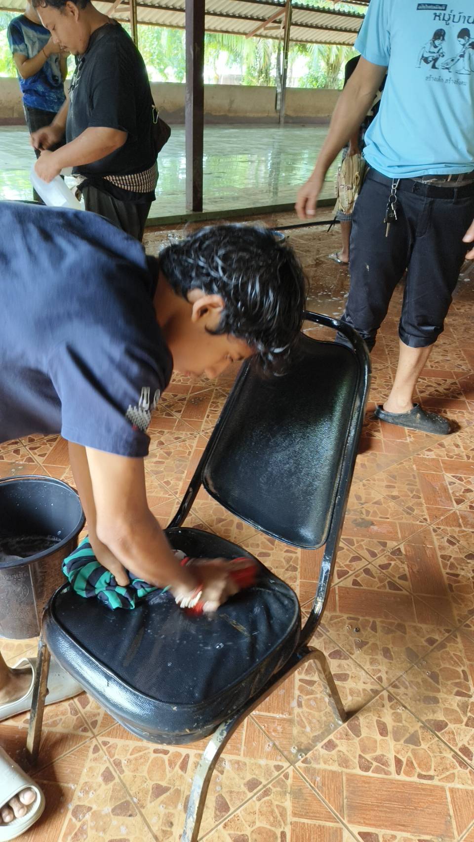 กลุ่มเด็กๆ มัธยมห้องเรียนงานช่างไม้ ,ครูช่างจากโรงเรียนหมู่บ้านเด็ก ,พนักงานโครงการอาหารเพลฯ และโครงการตู้หนังสือฯของมูลนิธิเด็ก เข้ามาช่วยทำความสะอาดห้องเรียนที่วัดโรงเรียนวัดพระปริยัติวัดฝั่งหมิ่นวิทยาและโรงเรียนวัดวังมินวิทยา