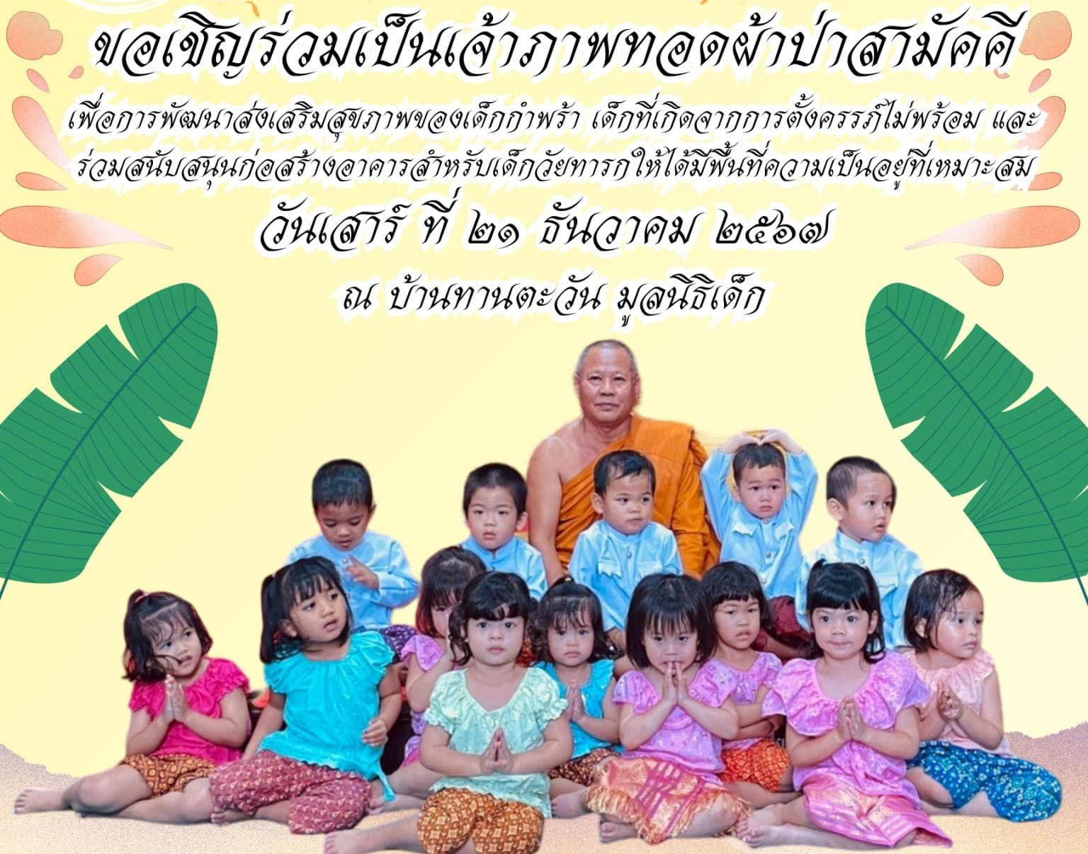 บ้านทานตะวัน ขอเชิญชวนผู้ใหญ่ใจดี ร่วมทำบุญ ผ้าป่าสามัคคี เพื่อการส่งเสริมฟื้นฟูสุขภาพและพัฒนาการเด็ก " โดยจะจัดขึ้นใน วันเสาร์ที่ 21 ธันวาคม ๒๕๖๗ ณ ลานจอดรถ มูลนิธิเด็ก โดย ท่านสามารถร่วมบริจาค