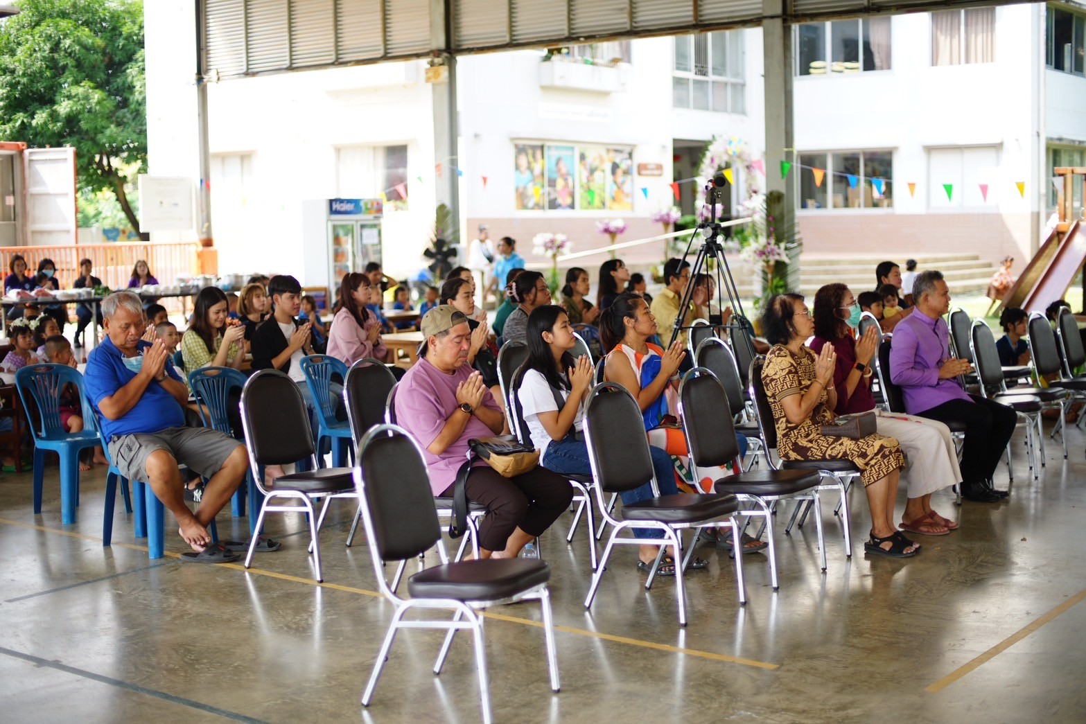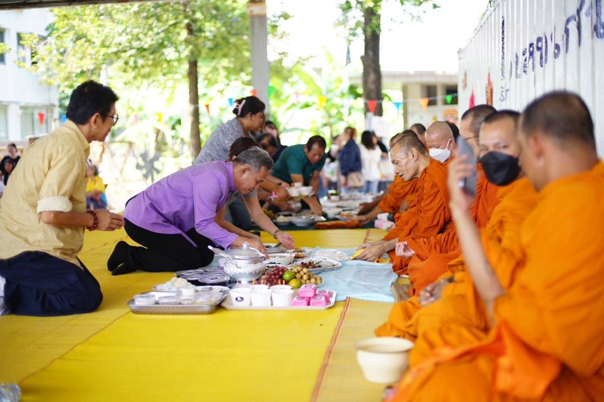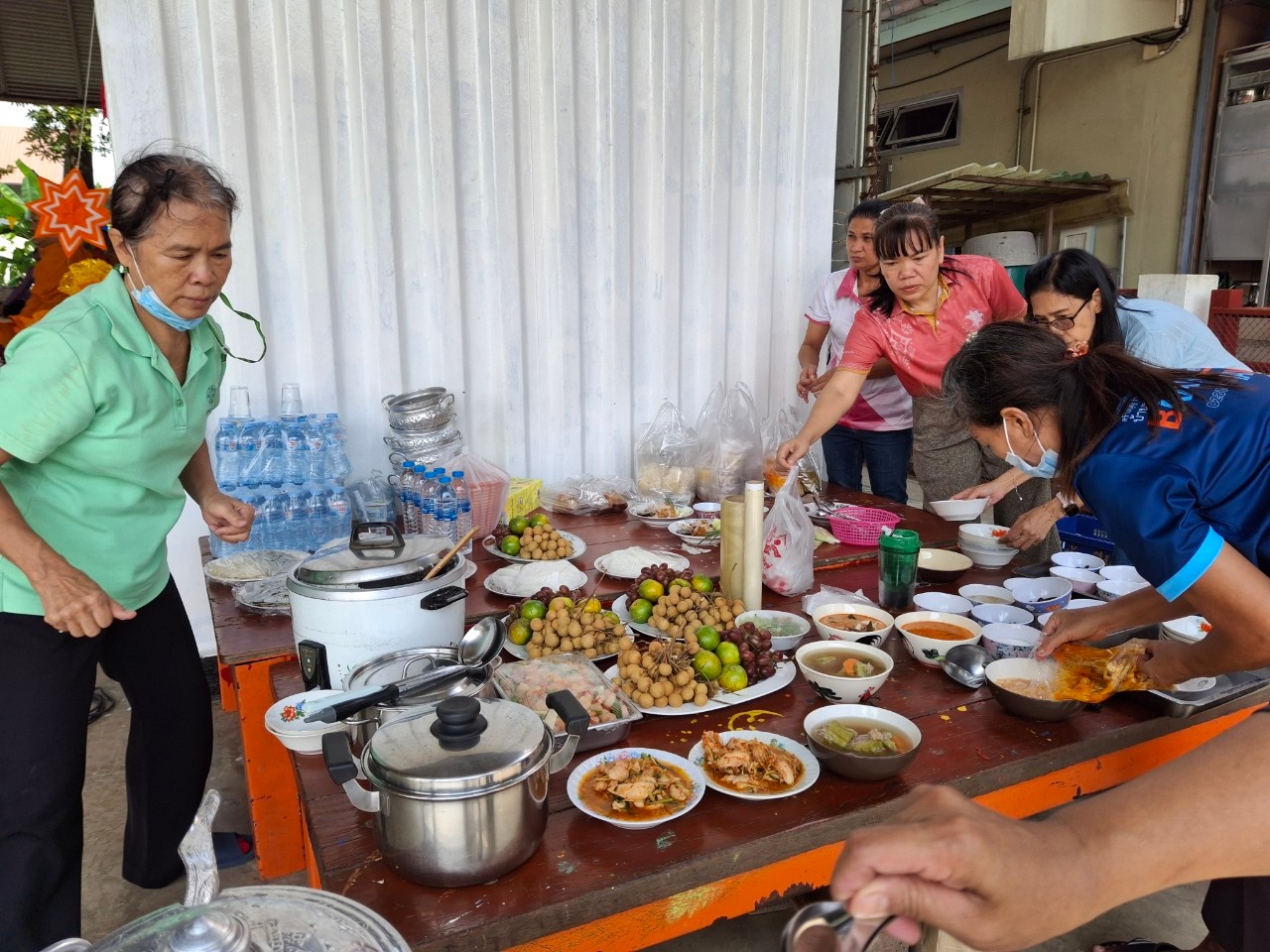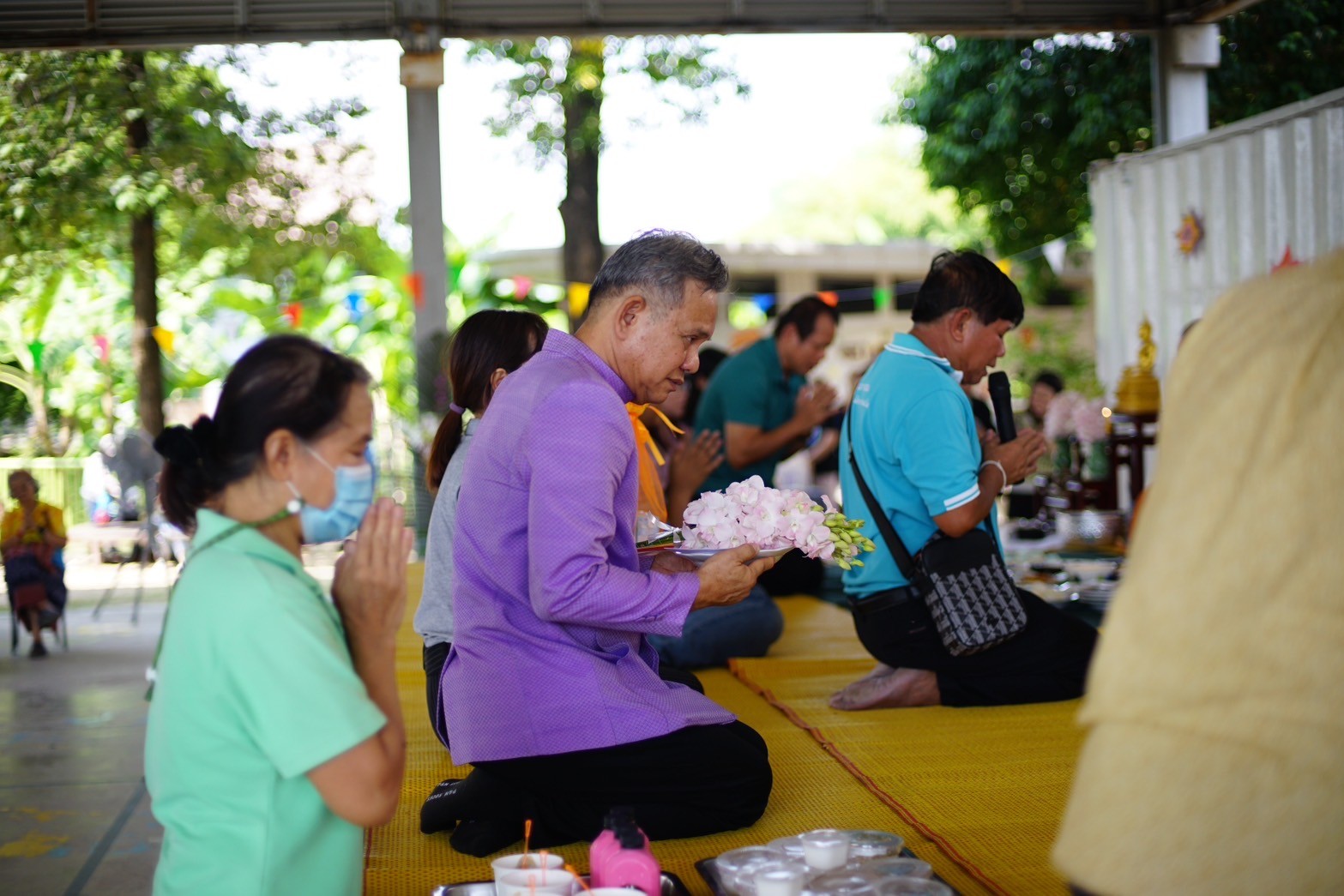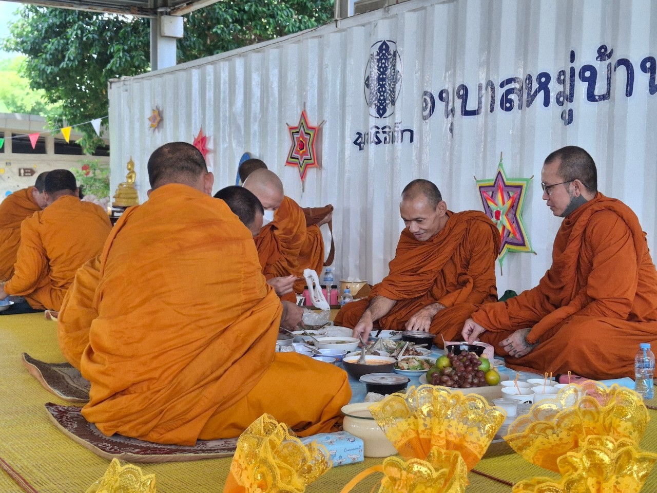 ผู้อำนวยการโรงเรียนอนุบาลหมู่บานเด็กสานรัก ร่วมถวายเพลพระกับพนักงานและผู้เข้าร่วมงาน