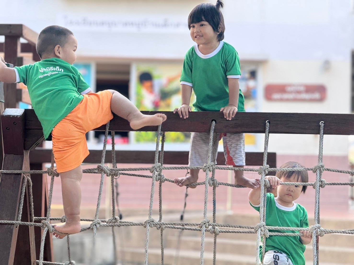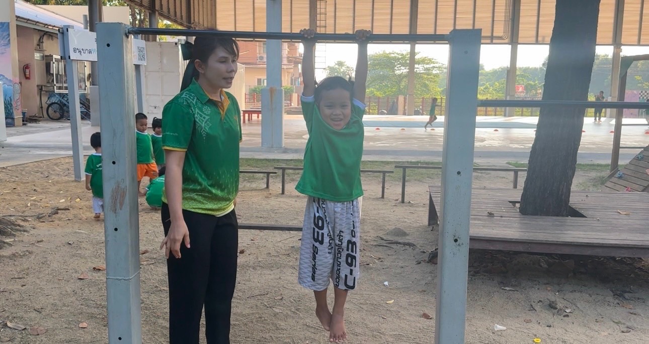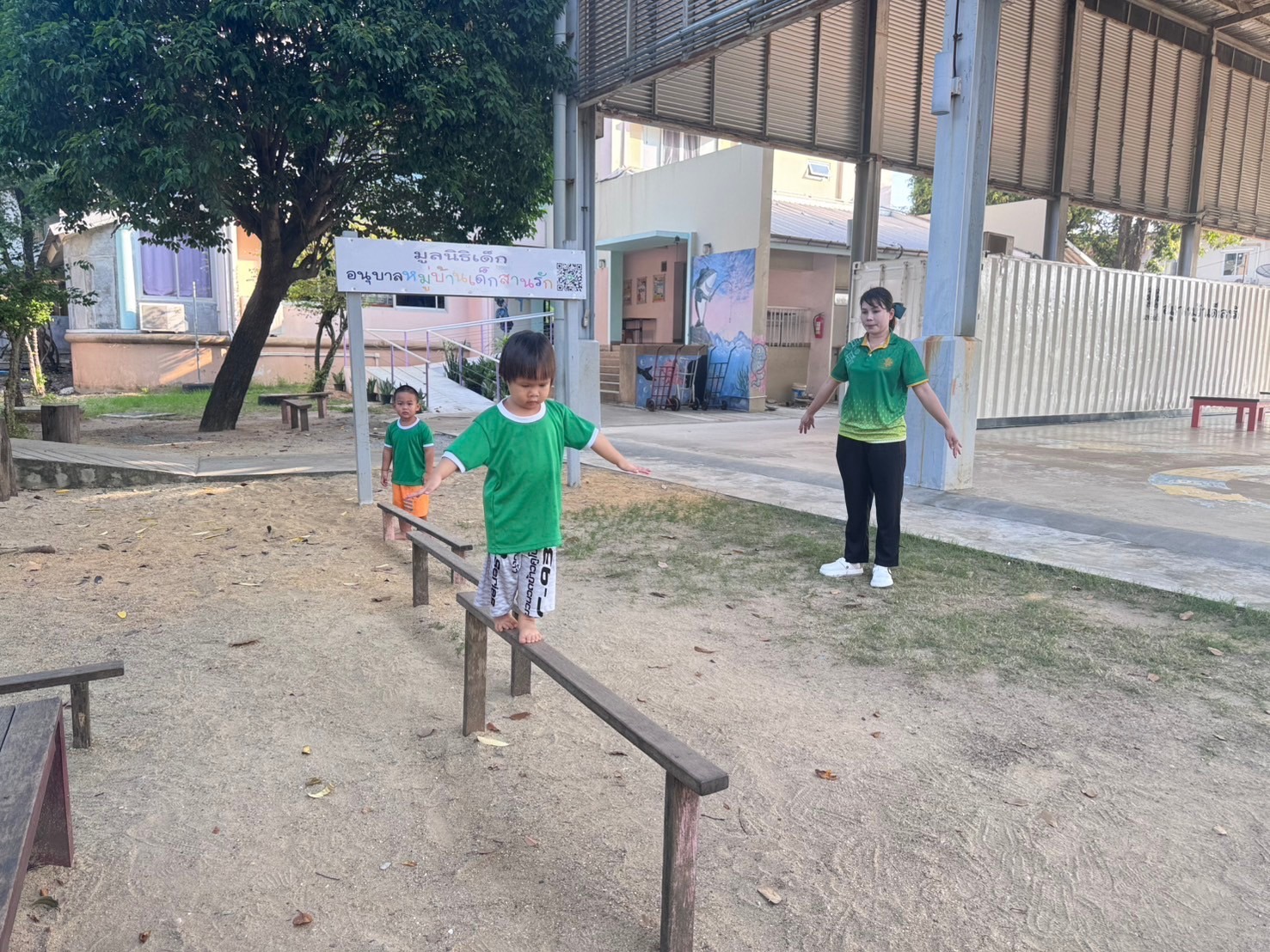 พื้นที่สร้างสรรค์ที่เป็นมากกว่าแค่สนามเด็กเล่น ห้องเรียนครูต่าย ครูนายได้จัดกิจกรรมนอกห้องเรียนได้ออกกำลังกายเพื่อส่งเสริมพัฒนาการทางด้านร่างกายต่างๆ อาทิเช่น
