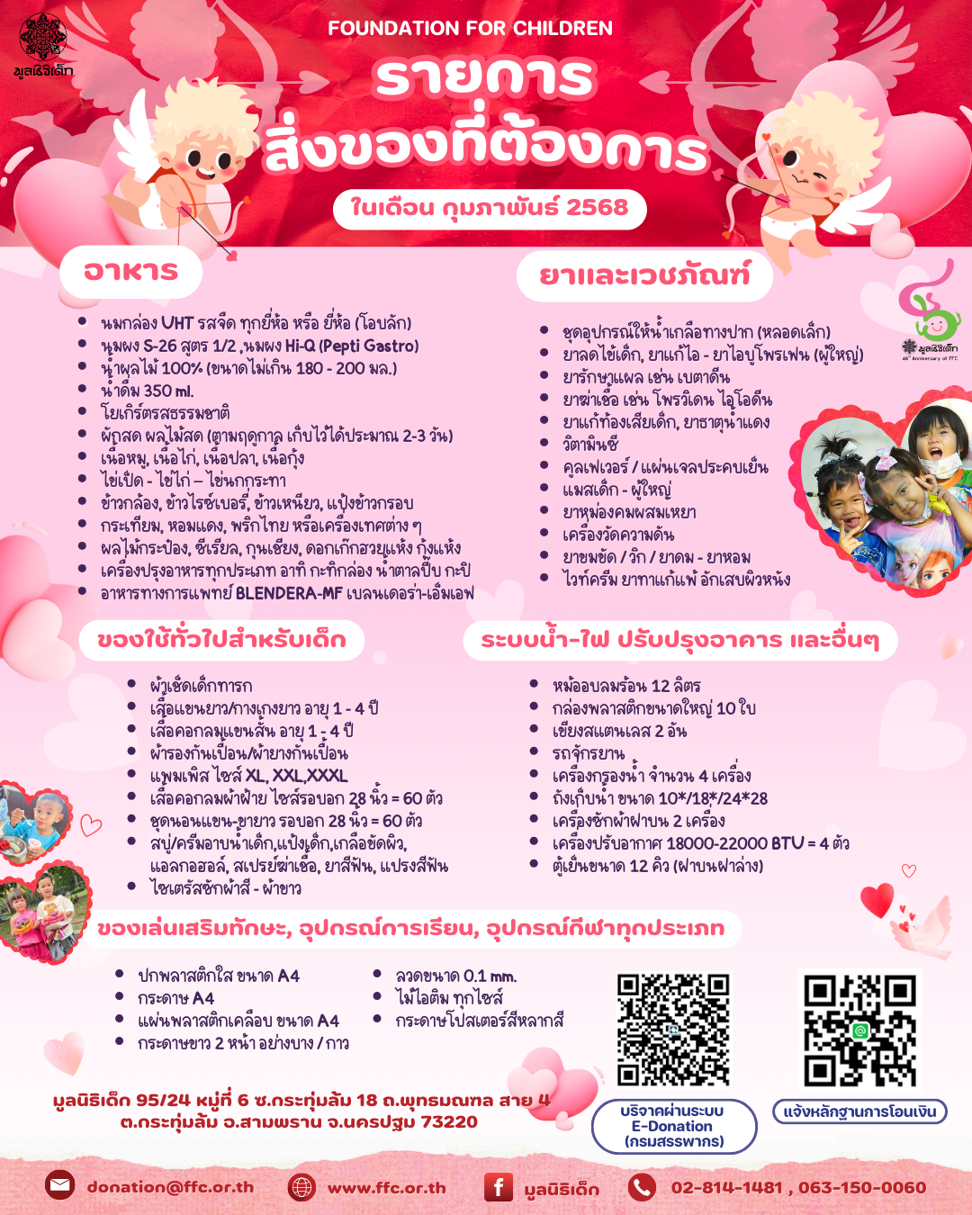 สนับสนุนได้ที่บัญชี “มูลนิธิเด็ก”