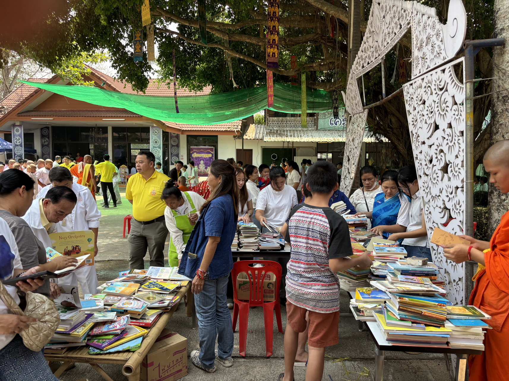 ในงานนี้ น.ส.เอื้อมเดือน ชนะบุญวรานนท์ ผู้ดูแลโครงการห้องสมุดโรงเรียนในชนบทของมูลนิธิเด็ก ได้นำหนังสือมือสองมาขายผ่านกิจกรรมหนังสือเล่มละบาท โดยหนังสือแต่ละเล่มมีราคาขายเพียงเล่มละ ๑ บาท มีผู้สนใจในงานเป็นจำนวนมาก เดินเข้ามาแวะเวียนหยิบอ่านเพื่อเลือกหนังสือที่อยากอ่านไปในราคาไม่แพง มีทั้งบุคคลทั่วไปที่มาร่วมงาน นายอำเภอเวียงป่าเป้า หัวหน้าสำนักพุทธจังหวัดเชียงราย ก็ยังสนใจหยิบจับติดไม้ติดมือ