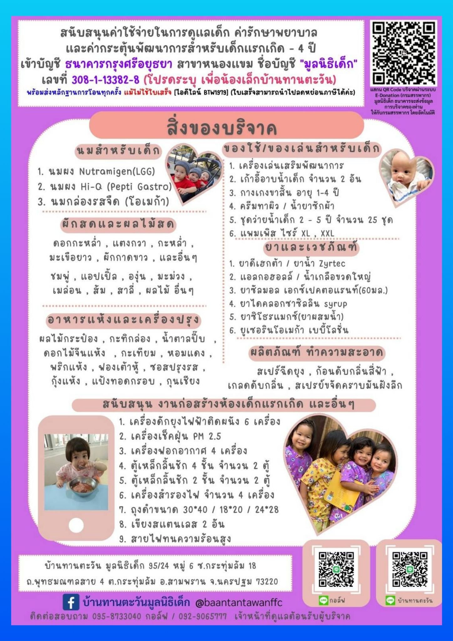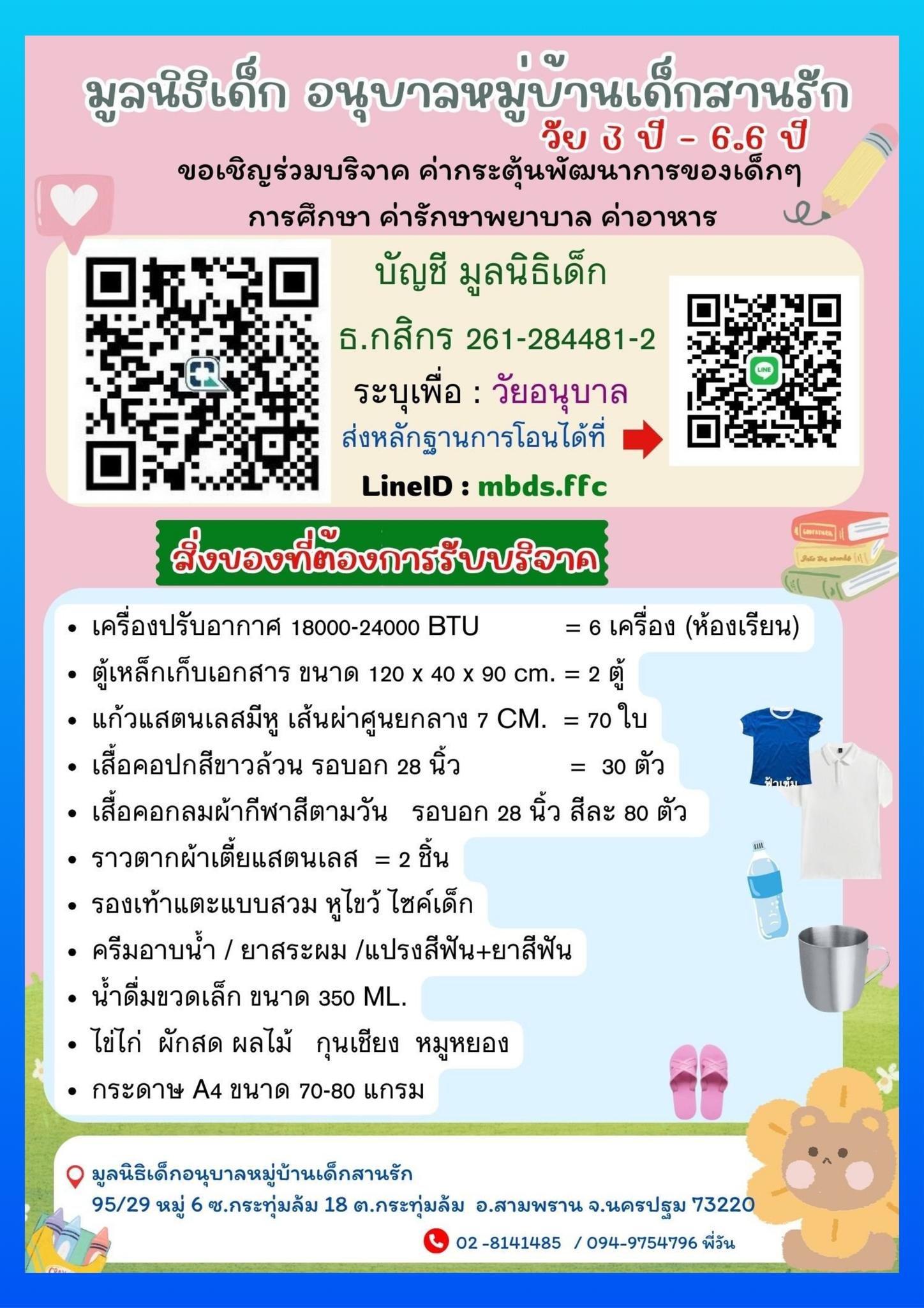 ***รายการสิ่งของที่แต่ละโครงการต้องการในเดือน เมษายน 2568 มีดังนี้ค่ะ