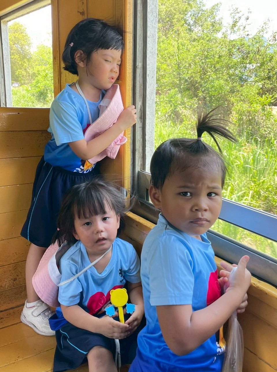 เมื่อวันที่ 23 เมษายน 2568 พี่บี แม่หญิง และ แม่ๆ บ้านทานตะวัน พร้อมเพื่อนๆ ในห้องพากันไปส่งน้องทั้ง 3 คนที่ถึงวัยที่ต้องเข้าเรียนอนุบาล ไปเรียนต่อที่ โรงเรียนหมู่บ้านเด็ก จังหวัดกาญจบุรี เช้าวันเดินทางได้เปิดประสบการณ์ใหม่โดยพี่บีและแม่ๆ พาเด็กๆ นั่งรถไฟ ไปจังหวัดกาญจบุรี เพื่อได้สัมผัสประสบการณ์ใหม่ ได้ดูบรรยากาศสองข้างทางขณะรถไฟวิ่ง เด็กๆ สนุกและตื่นเต้นมากถึงแม้อากาศจะร้อนก็ตาม
