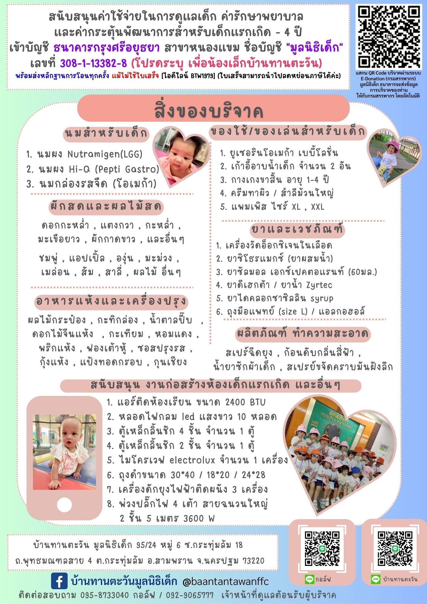 1. โครงการบ้านทานตะวัน (เด็กแรกเกิด – 4 ปี) เด็กประมาณ 40 คน อยู่พุทธมณฑลสาย 4