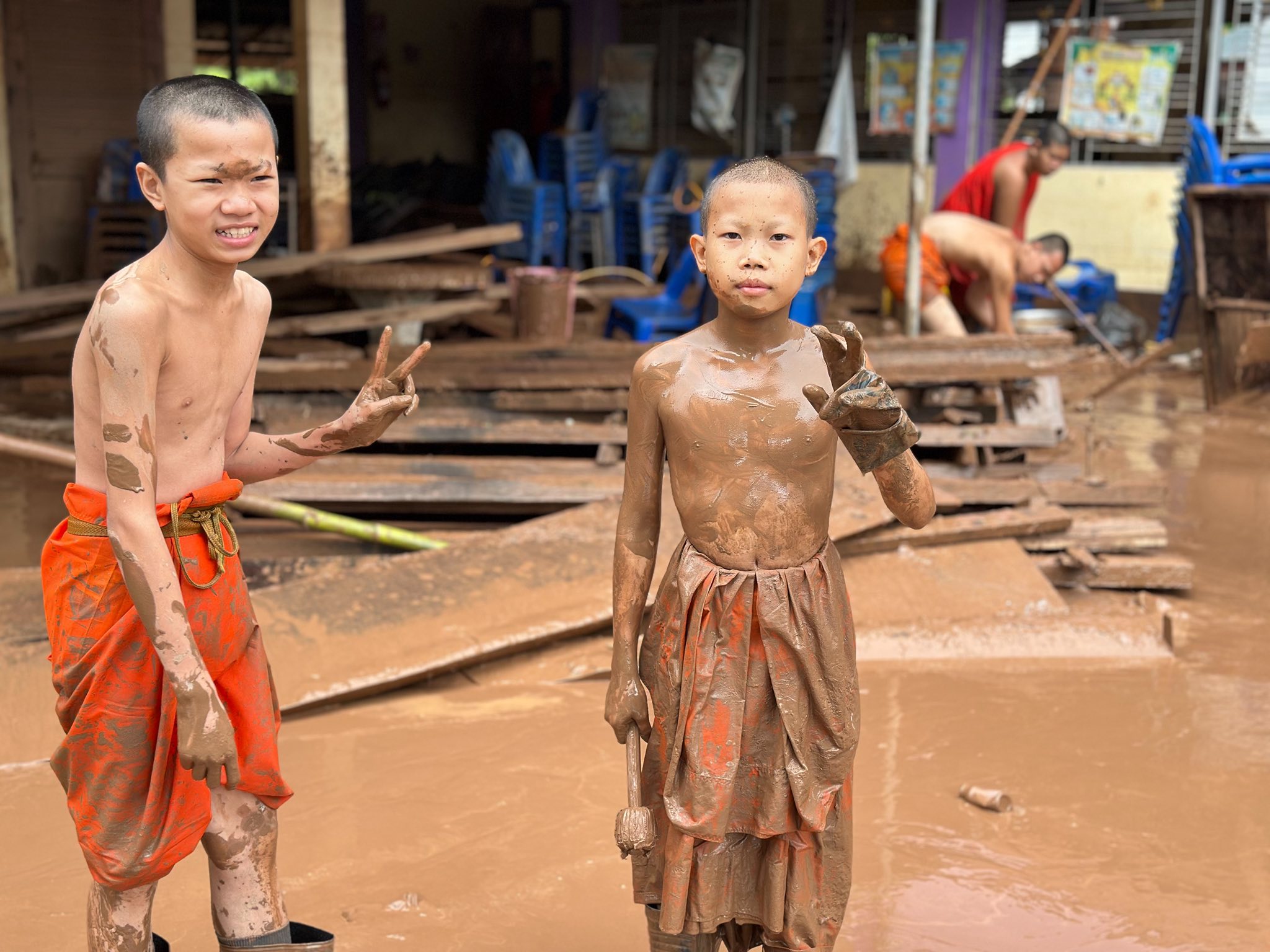 ในยามที่สามเณรน้อยต้องพลัดจากห้องเรียน สบงเปียกชุ่มด้วยน้ำโคลน มูลนิธิเด็กได้ก้าวเข้ามาเป็นแสงแห่งเมตตา ปลอบโยนใจและยื่นมือช่วยเหลือโดยไม่รีรอ