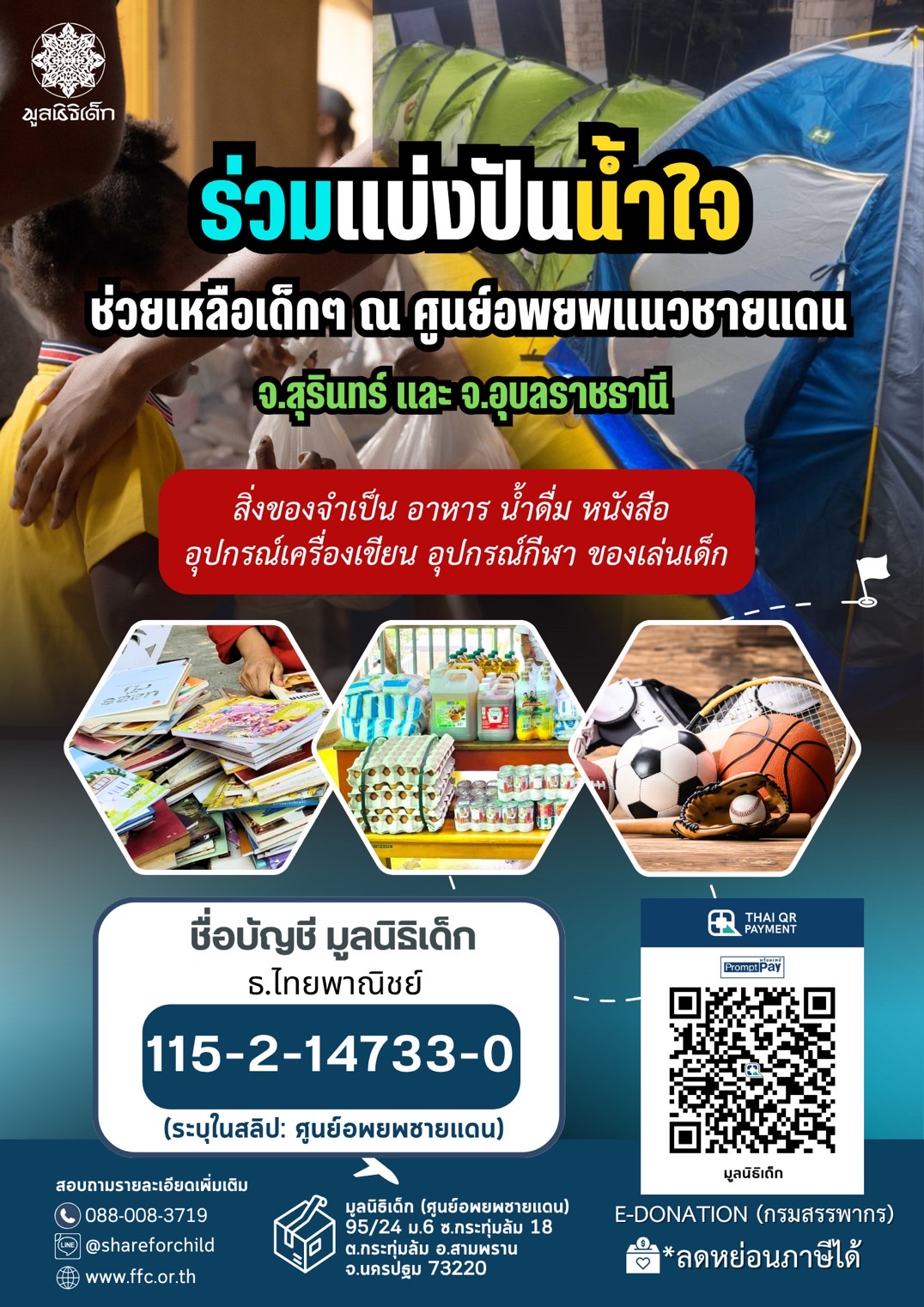 วันที่ 29 กรกฎาคม 2568 ทีมงานพนักงานมูลนิธิเด็ก ร่วมกันแพ็คของใช้จำเป็น ข้าวของ อาหารแห้ง ของใช้สำหรับเด็ก ต่างๆ เพื่อเตรียมส่งมอบให้กับเด็กและประชาชน ที่อยู่ในศูนย์พักพิงผู้ประสบภัยแนวชายแดนไทย ในวันที่ 31 กรกฎาคม 2568