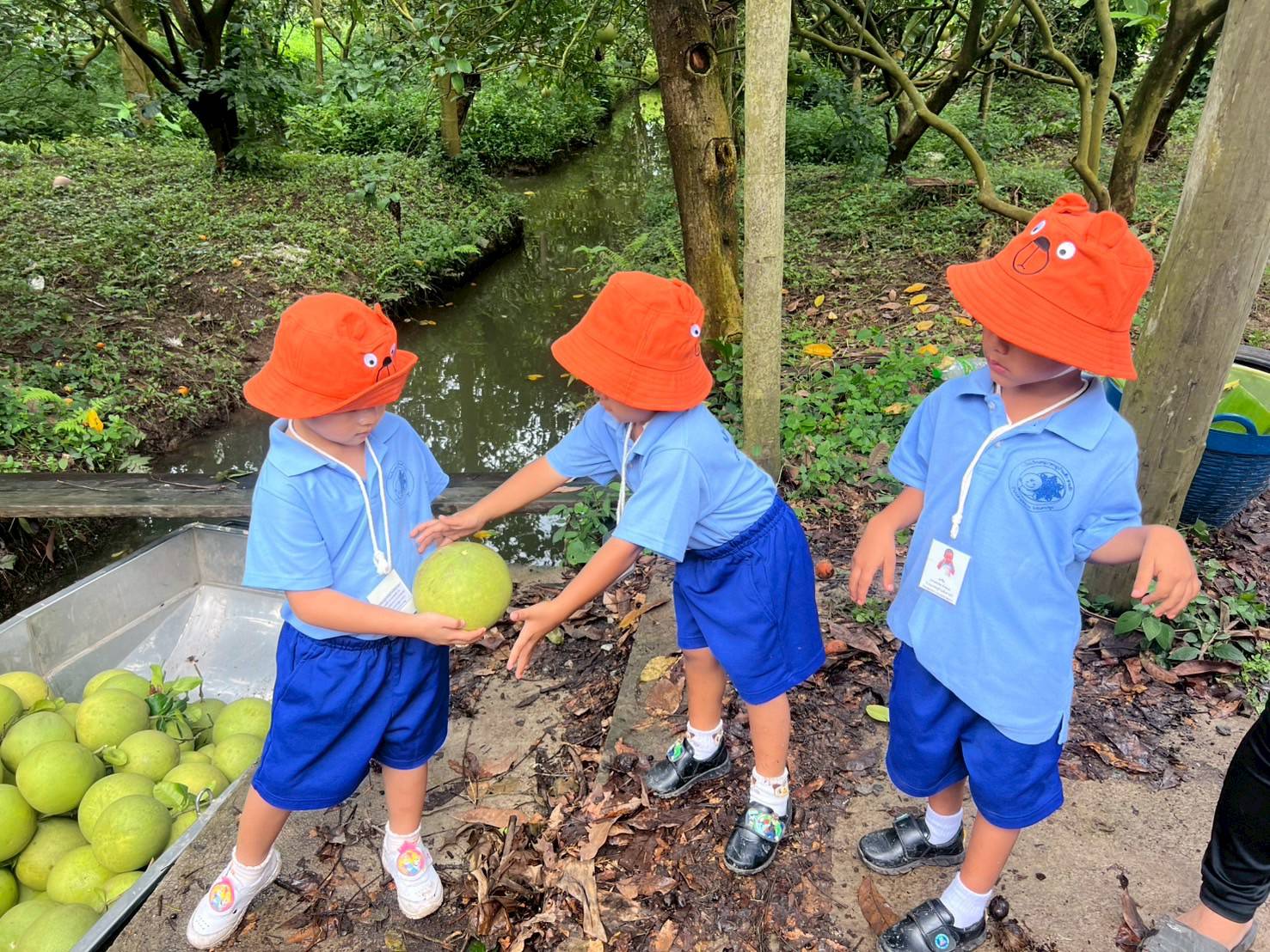 2. เด็กๆ ได้เรียนรู้จากการเห็น การจับ การชิม และขั้นตอนการขนส่งส้มโอจริง