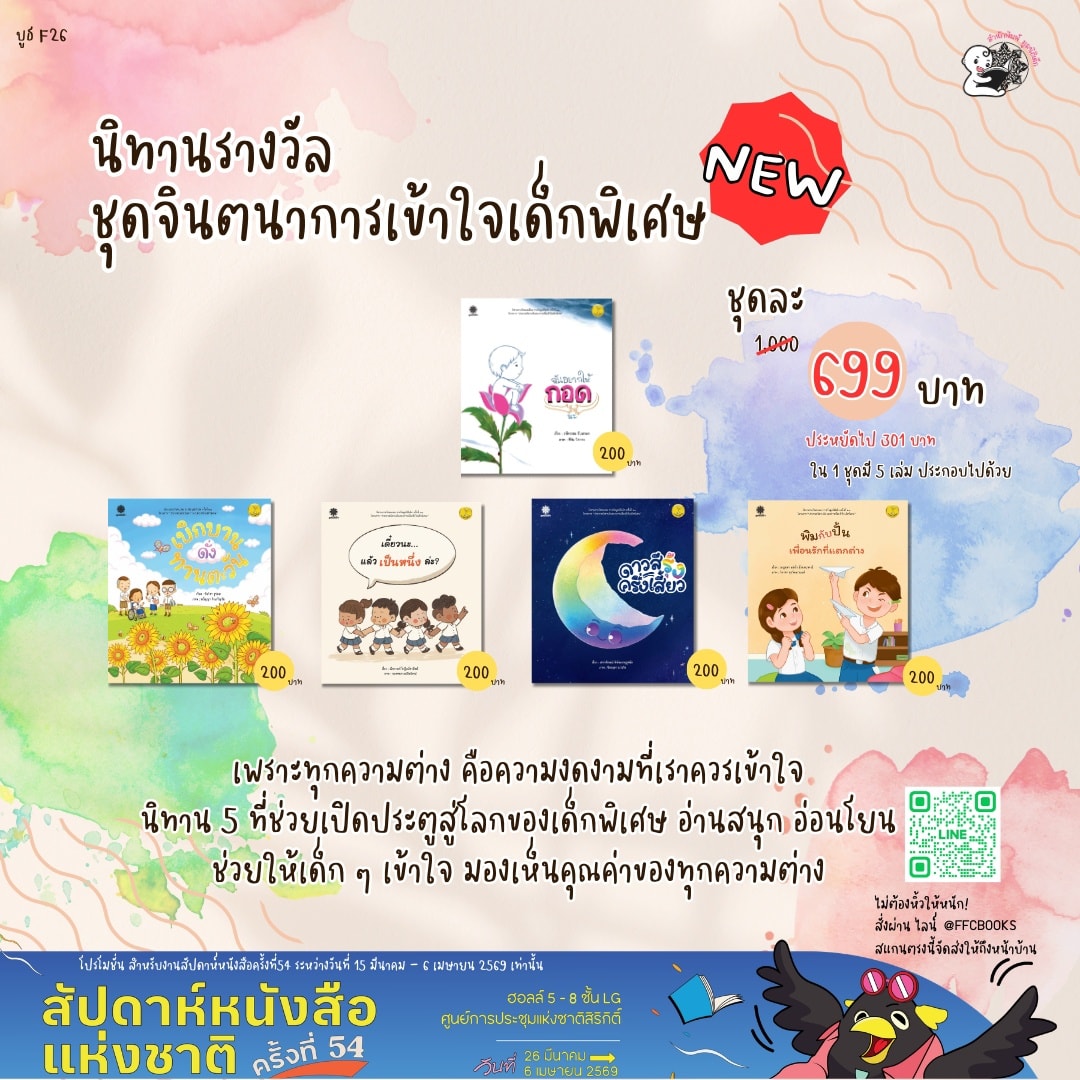 ชุดจินตนาการเข้าใจเด็กพิเศษ : นิทาน 5 เรื่องที่ช่วยเปิดประตูสู่โลกของ "เด็กพิเศษ" ให้เรามองเห็นความงดงามในความต่าง (ราคาพิเศษ 699 บาท จาก 1,000 บาท)