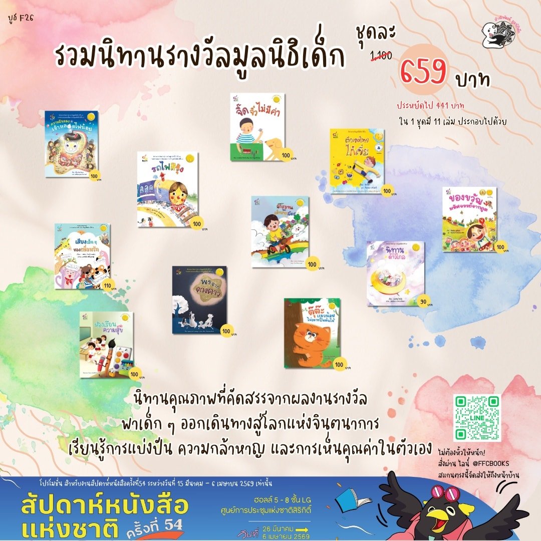 ทุก ๆ เล่มที่คุณสนับสนุนจากบูธ F26 ไม่ใช่แค่ได้หนังสือกลับไป แต่นี่คือการสนับสนุนการทำงานของ มูลนิธิเด็ก เพื่อนำไปช่วยเหลือและสร้างโอกาสทางการศึกษาให้แก่เด็กด้อยโอกาสทั่วประเทศ